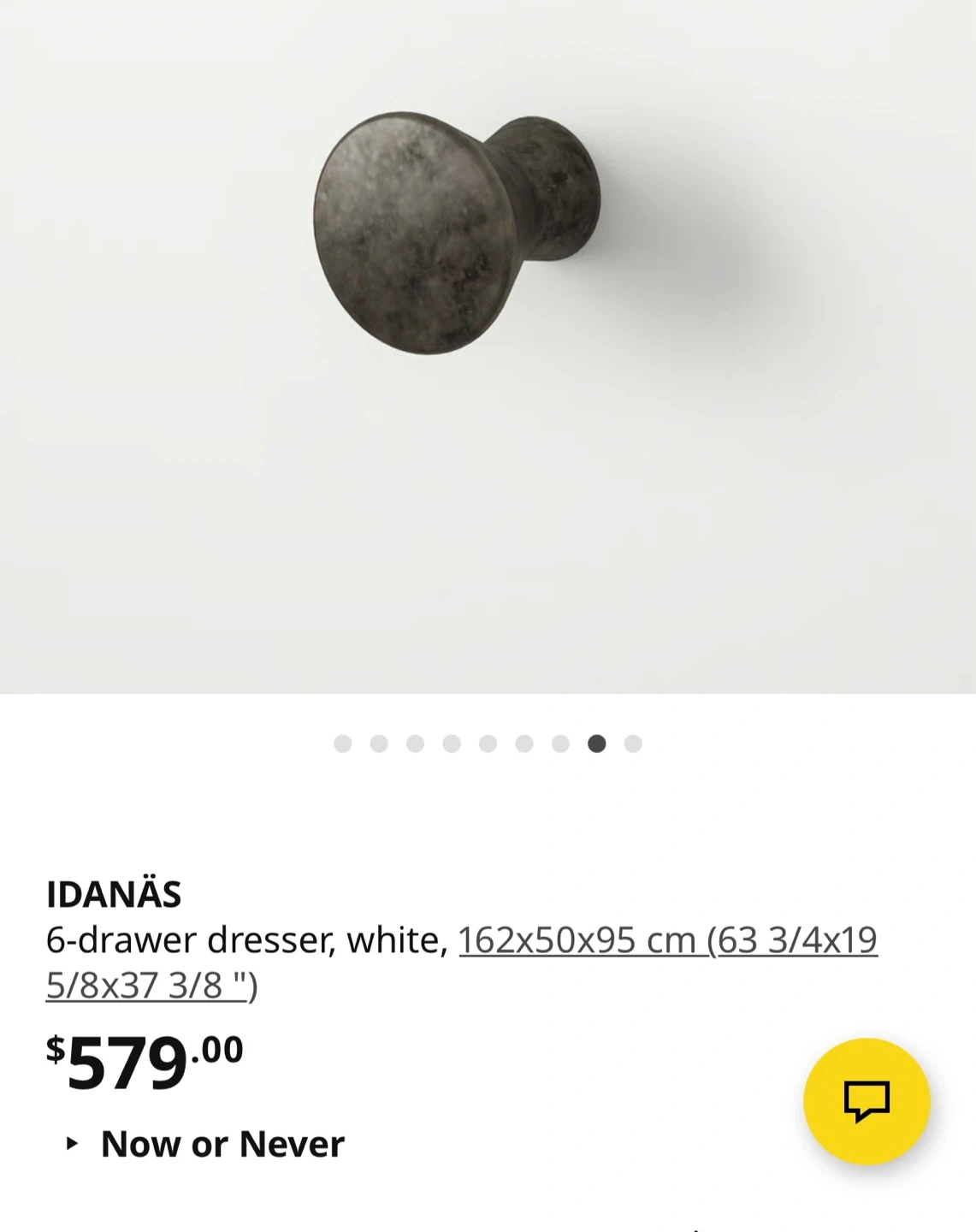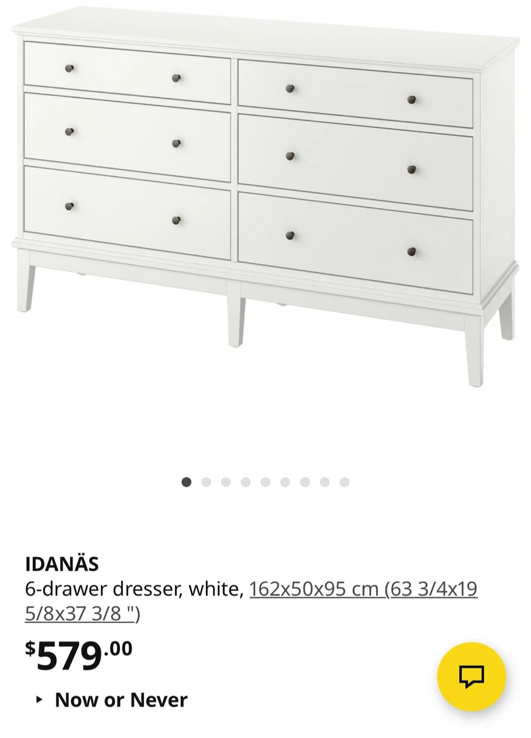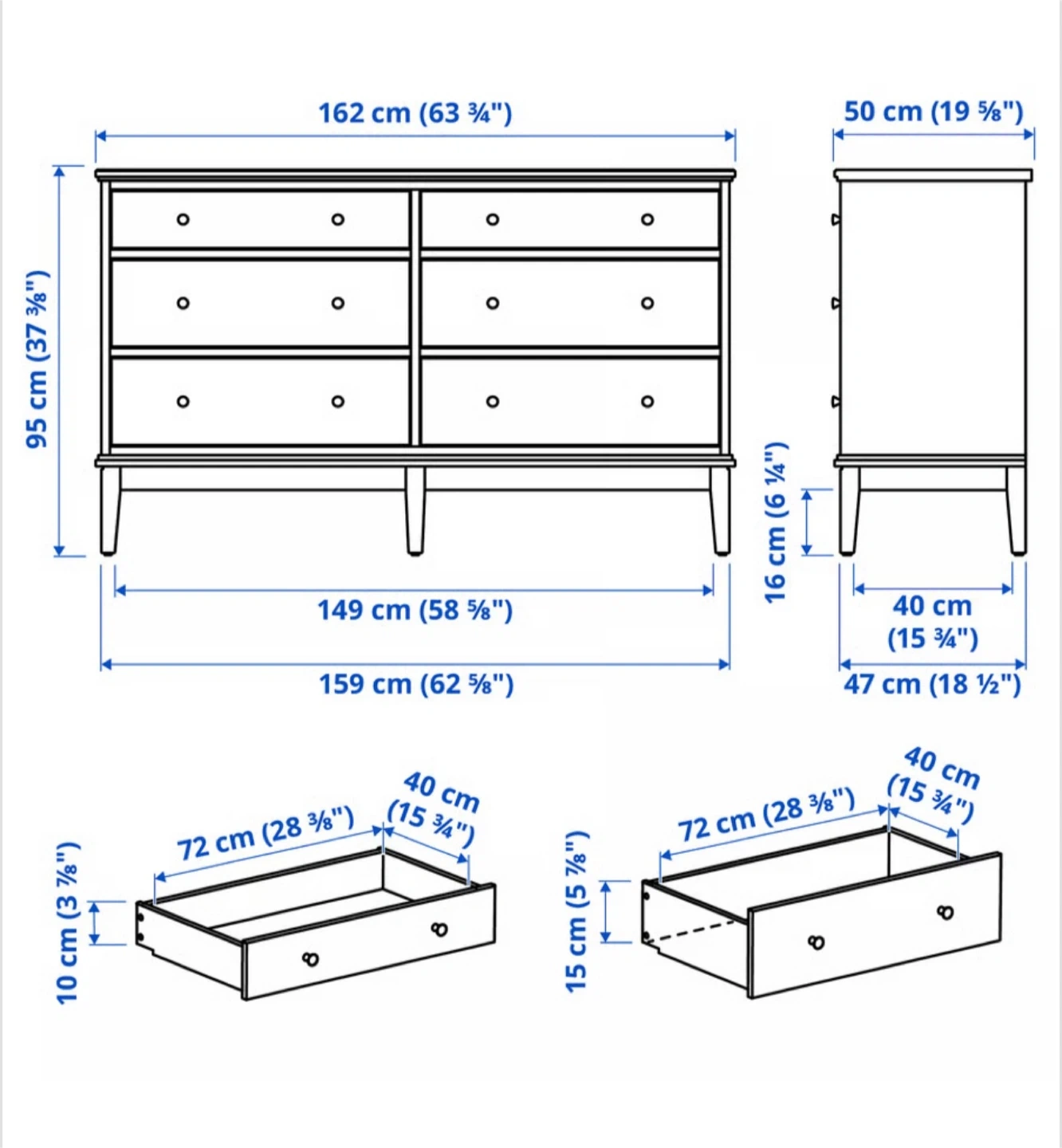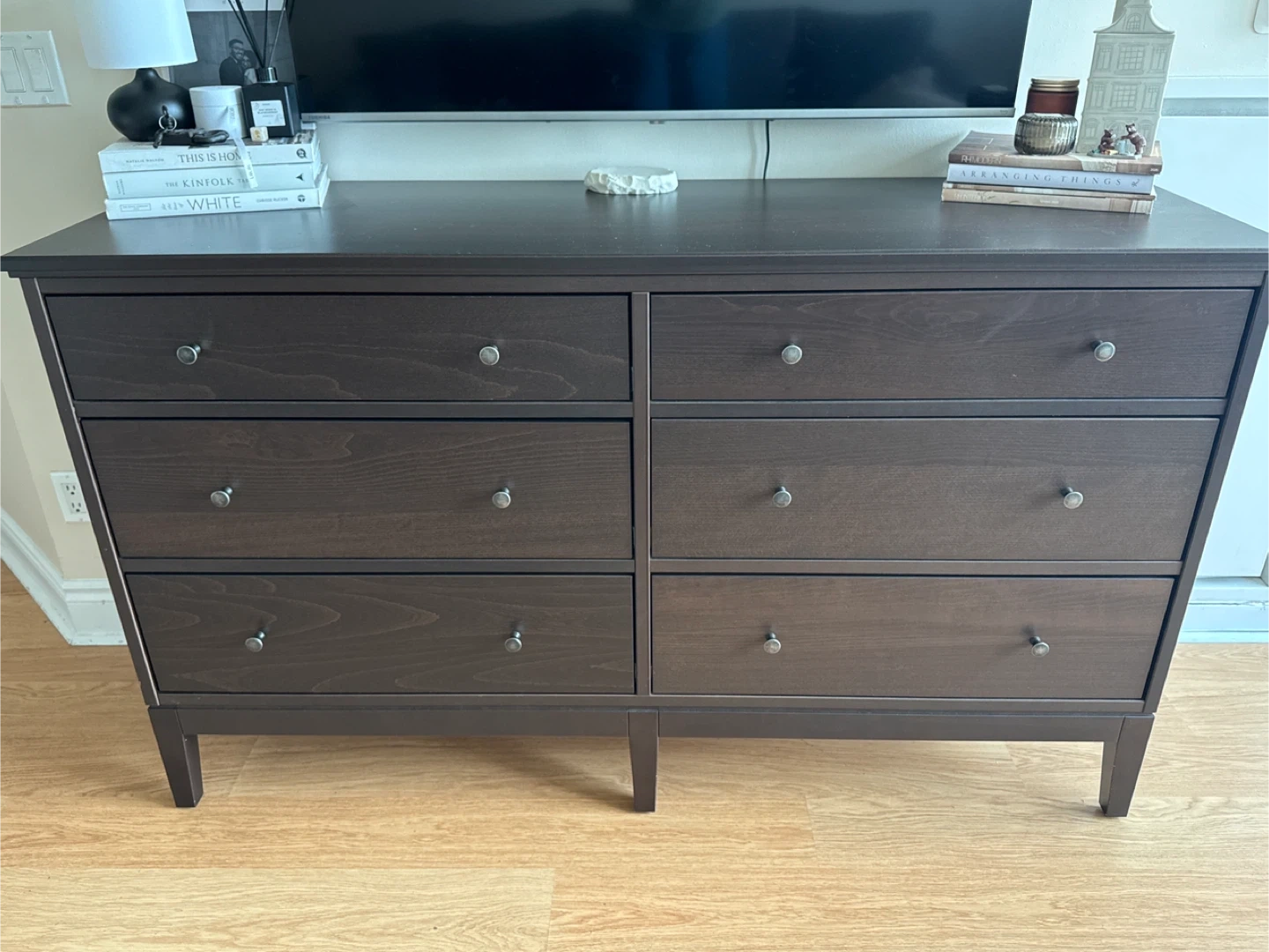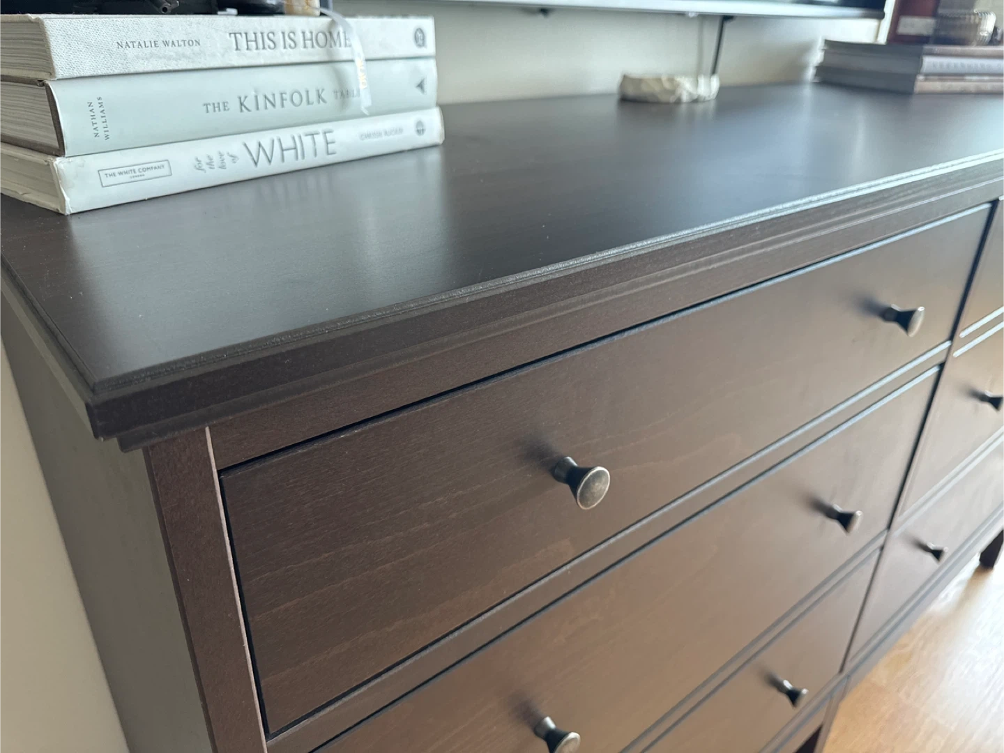 Selling an IKEA IDANÄS 6-drawer dresser in dark brown. This was an exclusive colour, they don’t have it anymore and it’s brand new. It's in great condition and ready for a new home! The dimensions are 162x50x95 cm (63 3/4x19 5/8x37 3/8 ")