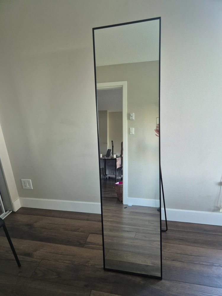 17IKEA KARMSUND Standing Mirror Bought 2023 May Still in good condition, able to hang clothings and bags at the back of the mirror LINK: https://www.ikea.com/ca/en/p/karmsund-standing-mirror-black-40294982/