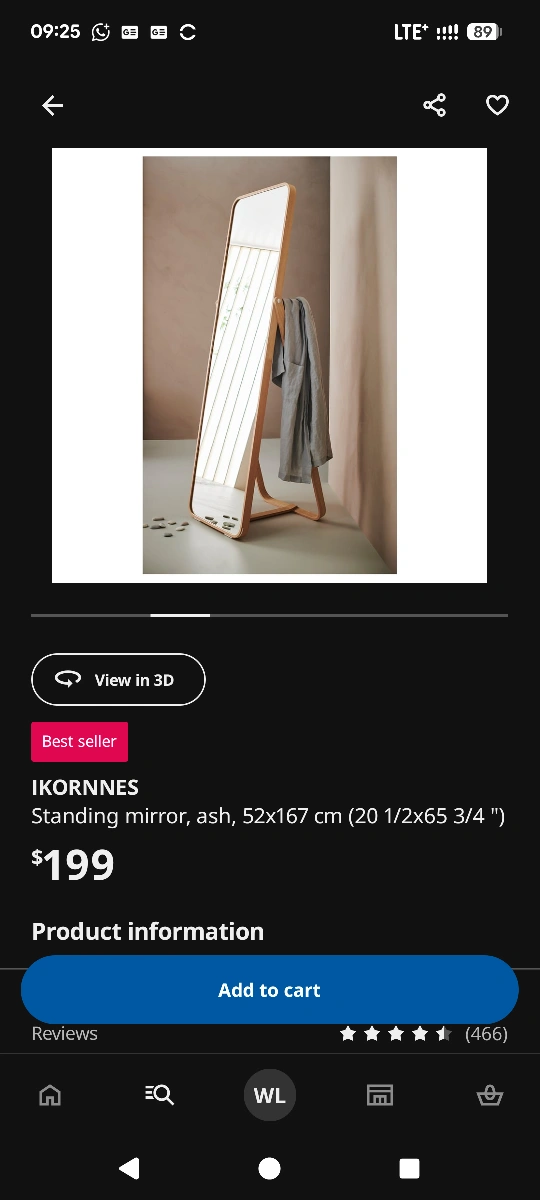 Selling an IKEA IKORNNES standing mirror in ash. It's in great condition and ready to brighten up your space! The dimensions are 52x167 cm (20 1/2x65 3/4 "). Originally bought for $199