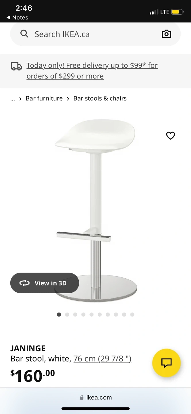 Selling 3 IKEA Janinge bar stool in white. It's 76 cm (29 7/8 ") tall. IKEA is selling now for $160. Great for adding a modern touch to your kitchen or bar area! Selling at $100 EACH.