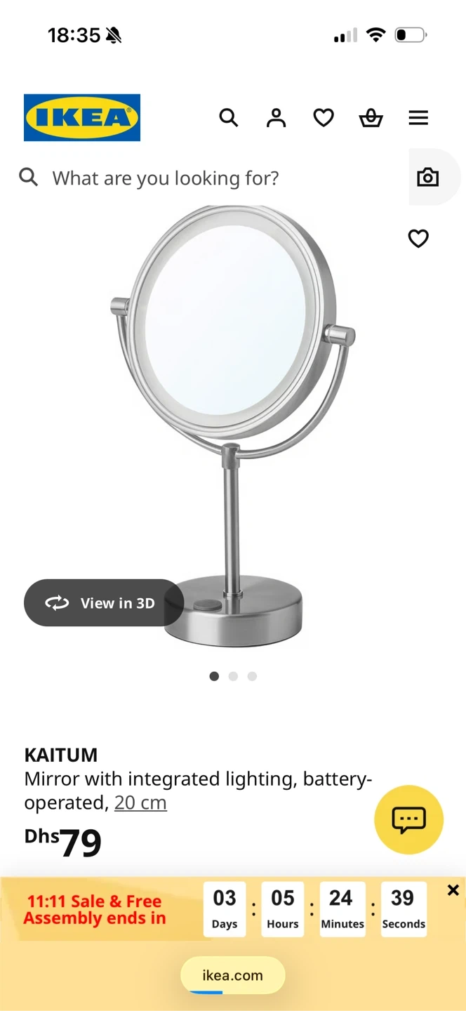 119Selling an IKEA KAITUM mirror with integrated lighting! It's battery operated and measures 20 cm. The mirror also has 3X magnification. It's in great condition and ready for a new home. Org. price:79