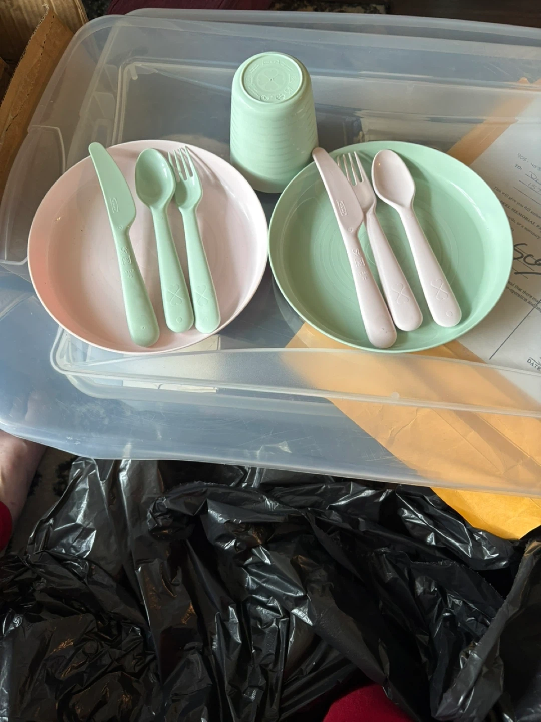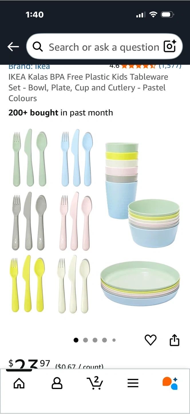 23Selling a set of IKEA Kalas BPA-free plastic kids tableware! This set includes plates, cup, and cutlery for two, in pastel colours. Great for little ones!