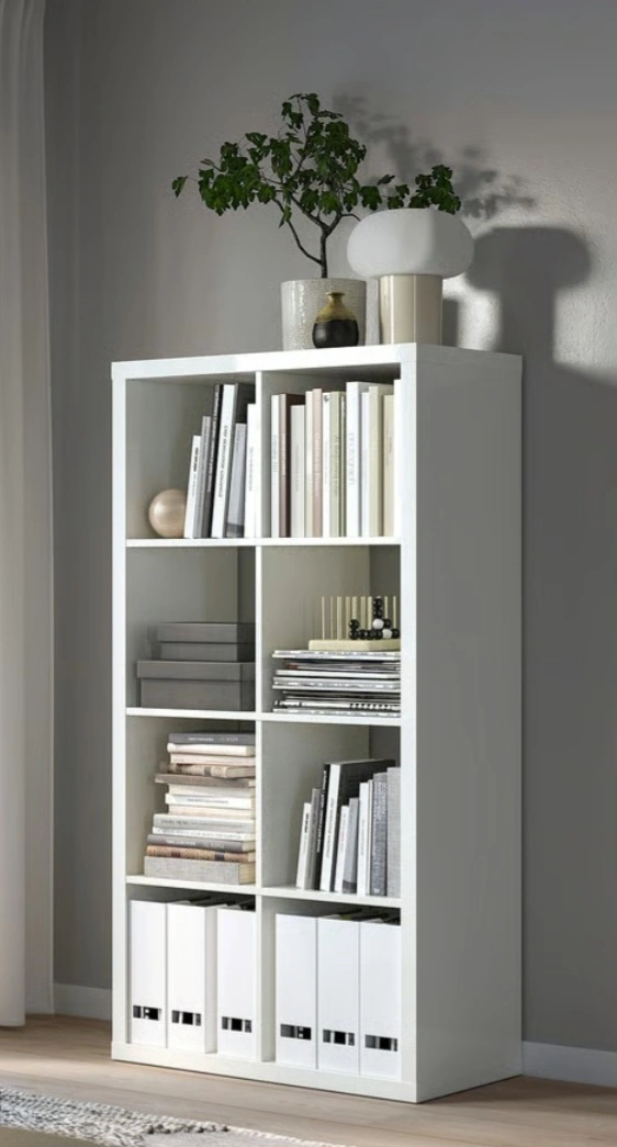 move out selling IKEA Kallax shelf unit in high gloss white. It's in good shape and ready for a new home! The dimensions are 77x147 cm (30 1/8x57 5/8 "). Perfect for organizing books, decor, or anything else you need to store