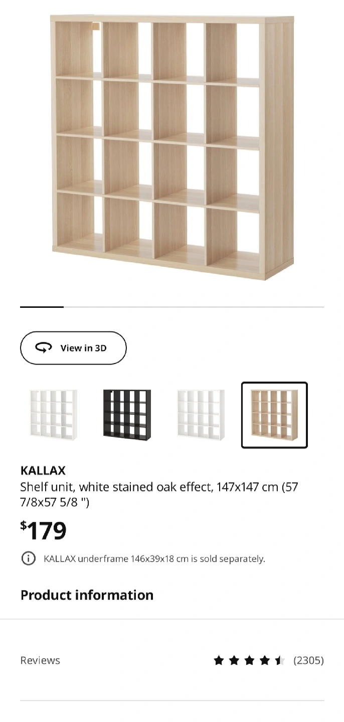 Selling an IKEA Kallax shelf unit in white stained oak effect. It's in great shape and ready for a new home! The unit measures 147x147 cm (57 7/8x57 5/8 "). Originally bought for $179. selling for $150 or best offer. Almost no damages pick up in Richmond or can deliver for a few