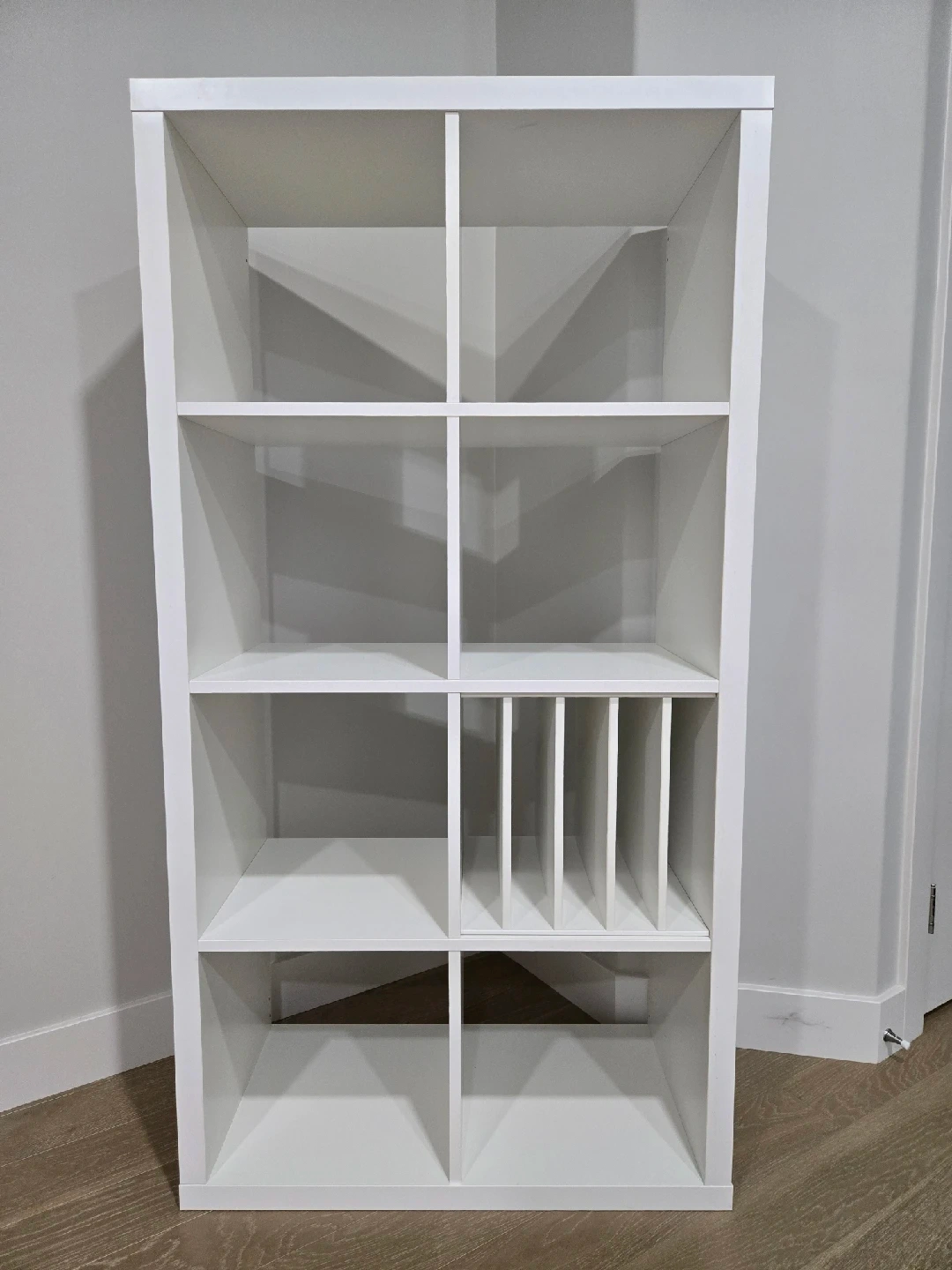 28Selling a white IKEA Kallax shelf unit. It's ready for a new home! A versatile piece for any room. It has some scratches, not in perfect condition. Ask for video to see the condition if you want. I have one more in perfect condition, $55. I can lower the price if you take both. Inset is selling separately. *please check my other active listing.