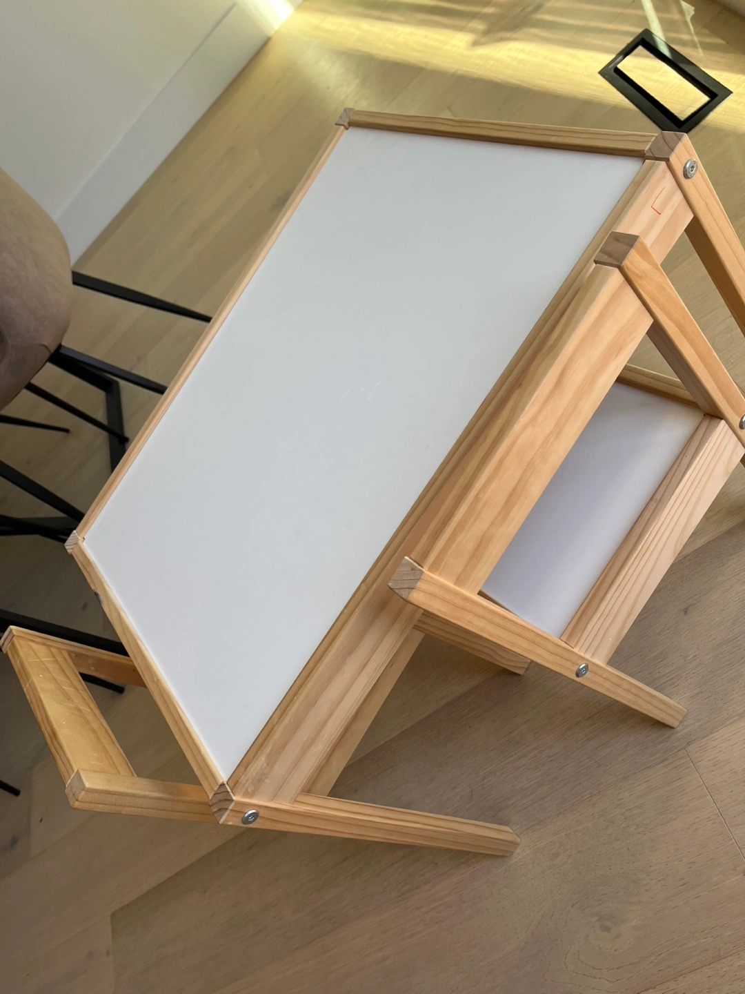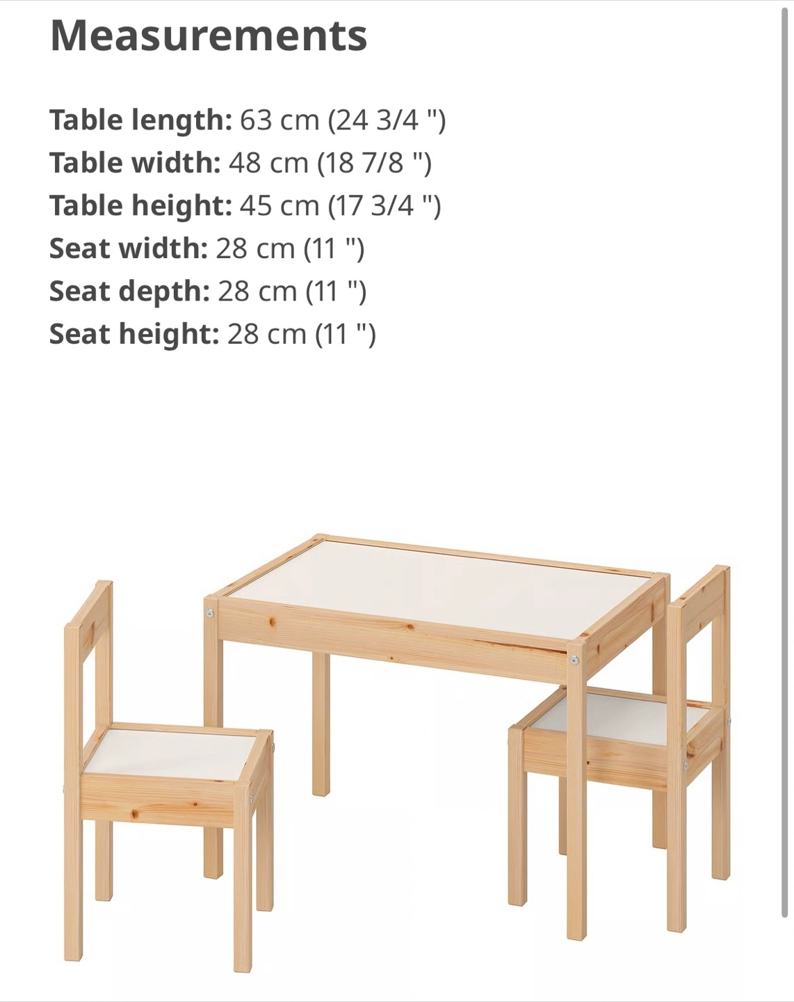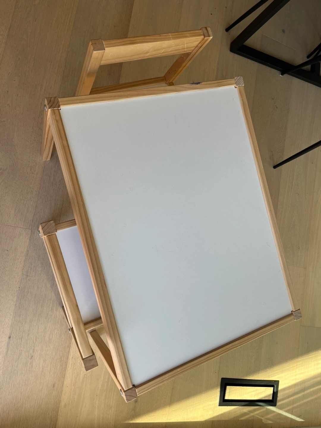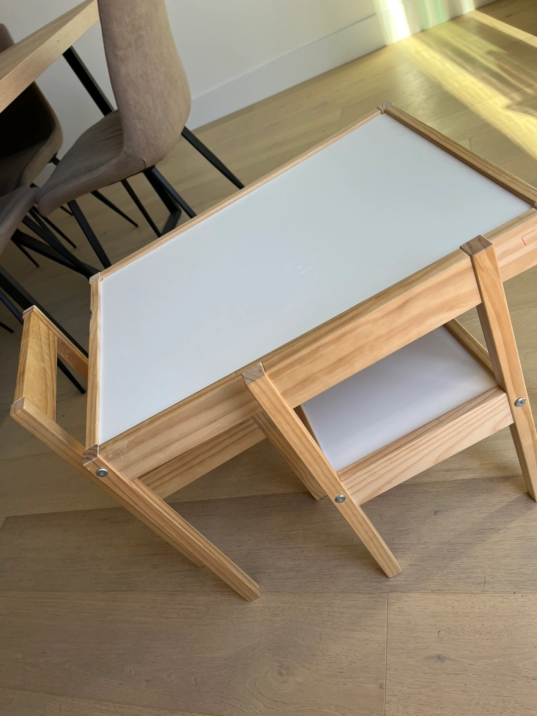 90Selling a kids' table and 2 chairs set! It's made with a natural wood frame and a white tabletop and seat. Perfect for arts and crafts or snack time for your little ones. Pick up only