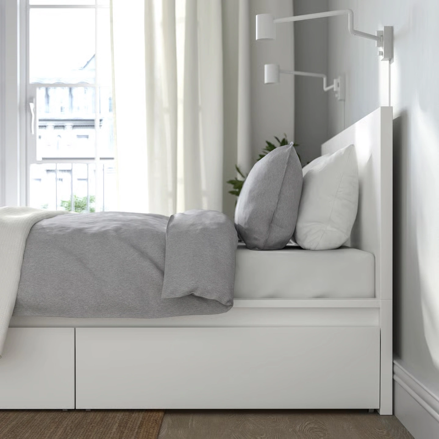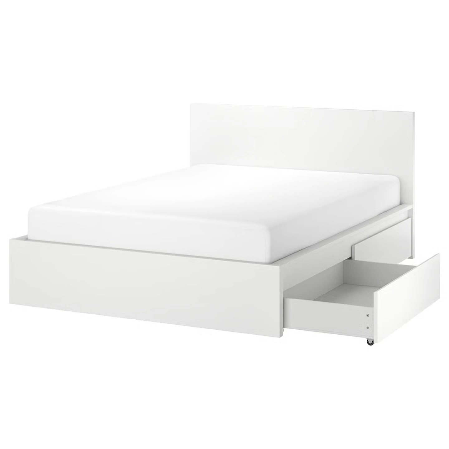 IKEA White Queen Size Malm bed frame + 2 Storage Drawers