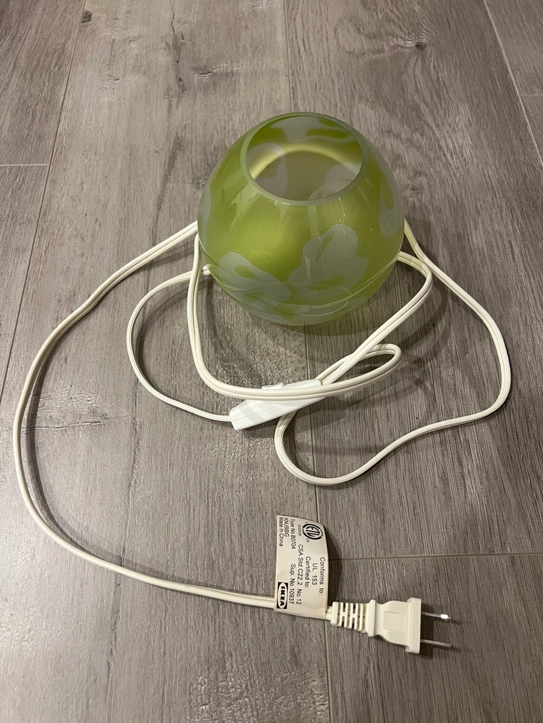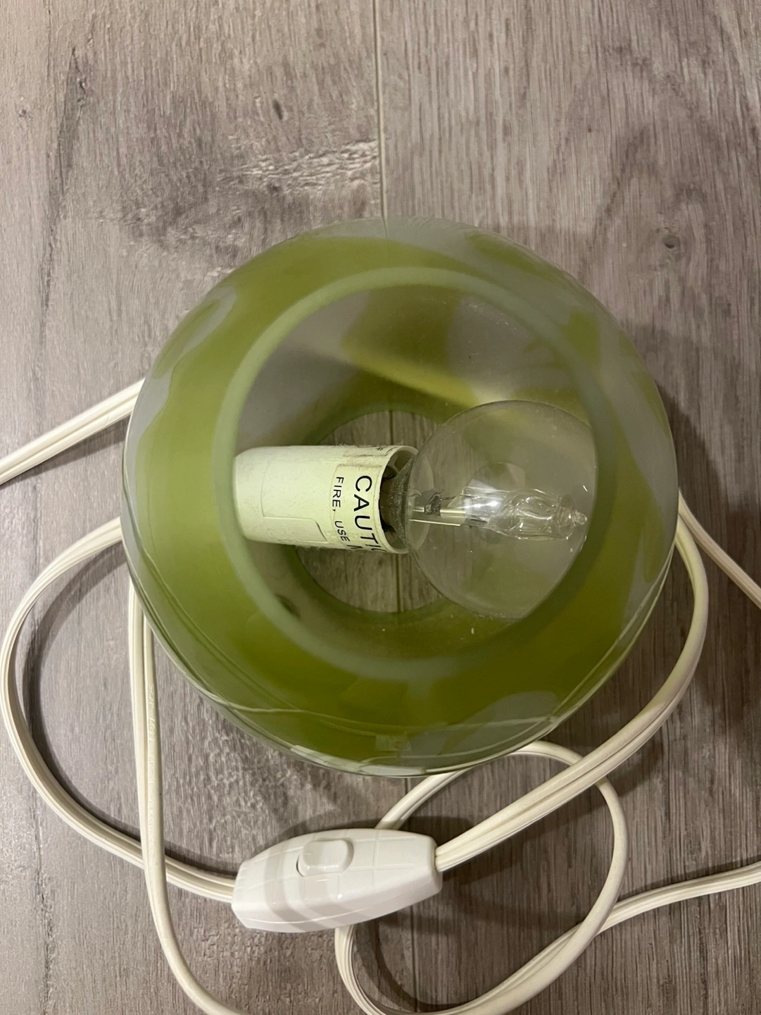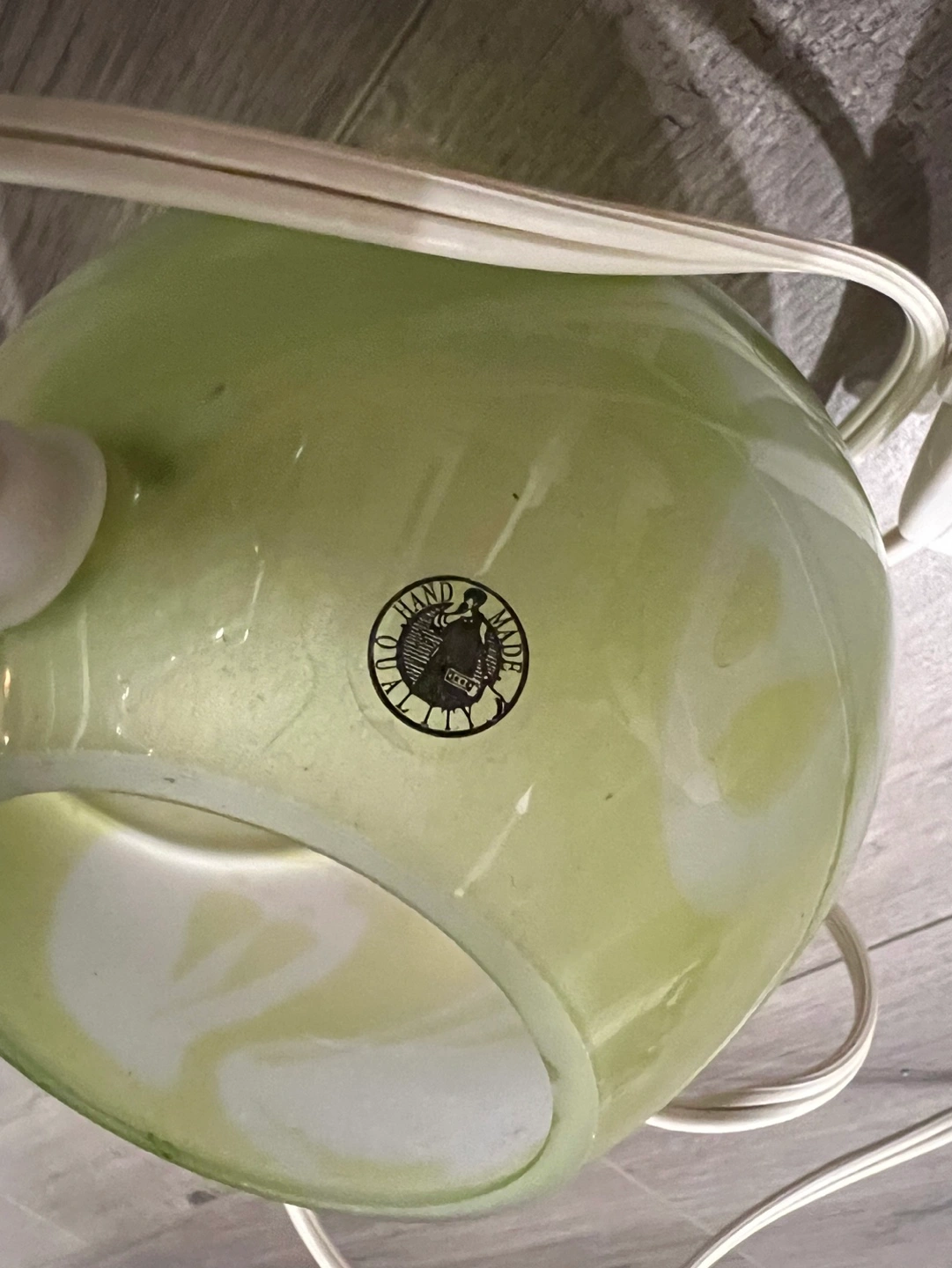 49Green glass table lamp with a white cord and switch. Light bulb not included