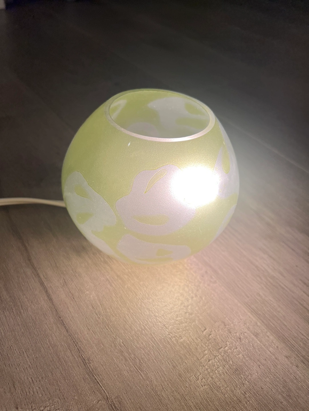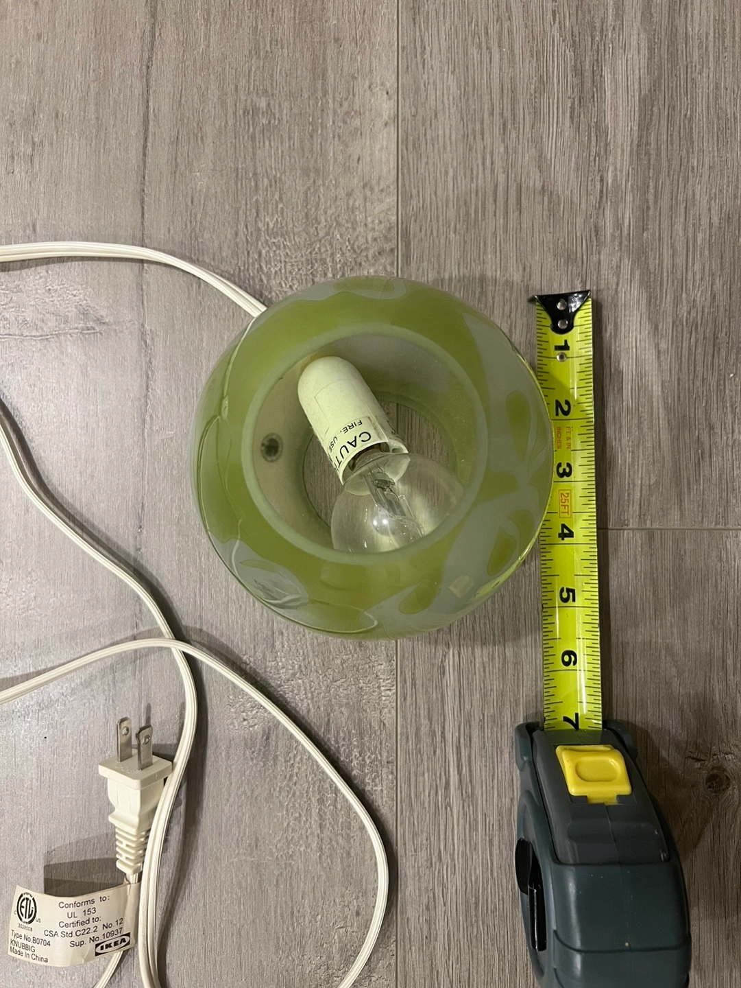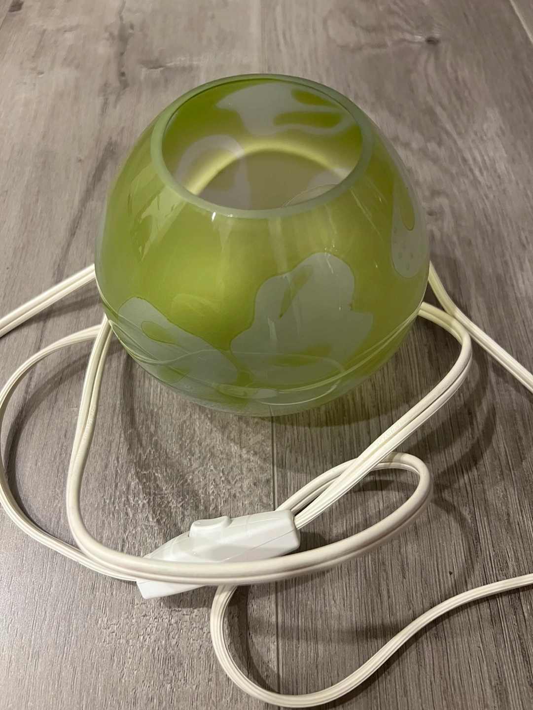 49Green glass table lamp with a white cord and switch. Light bulb not included