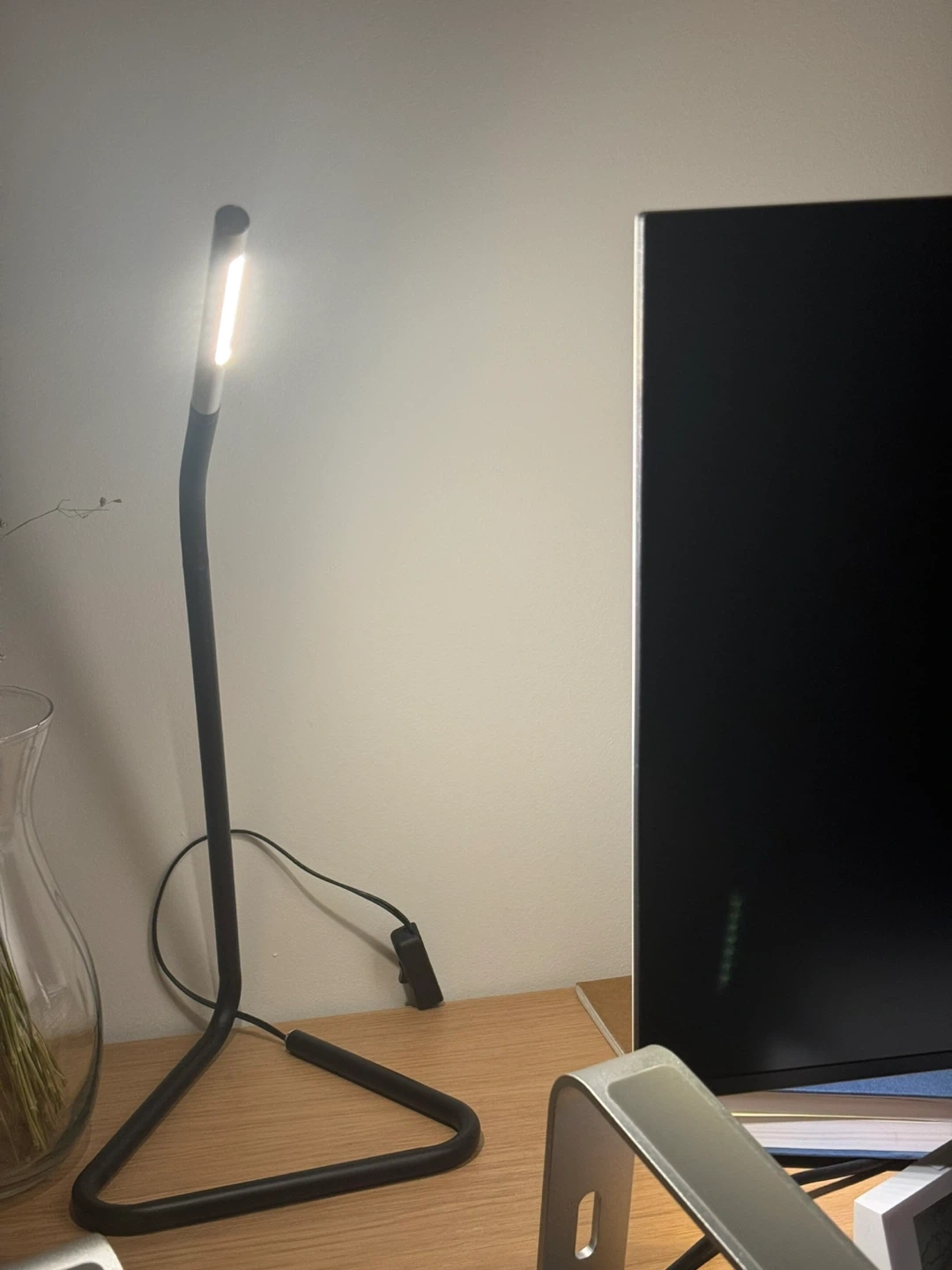 18Selling a sleek black LED desk lamp! It's in perfect condition and provides a nice, focused light for your workspace. Perfect for reading or working at your desk without disturbing anyone around.