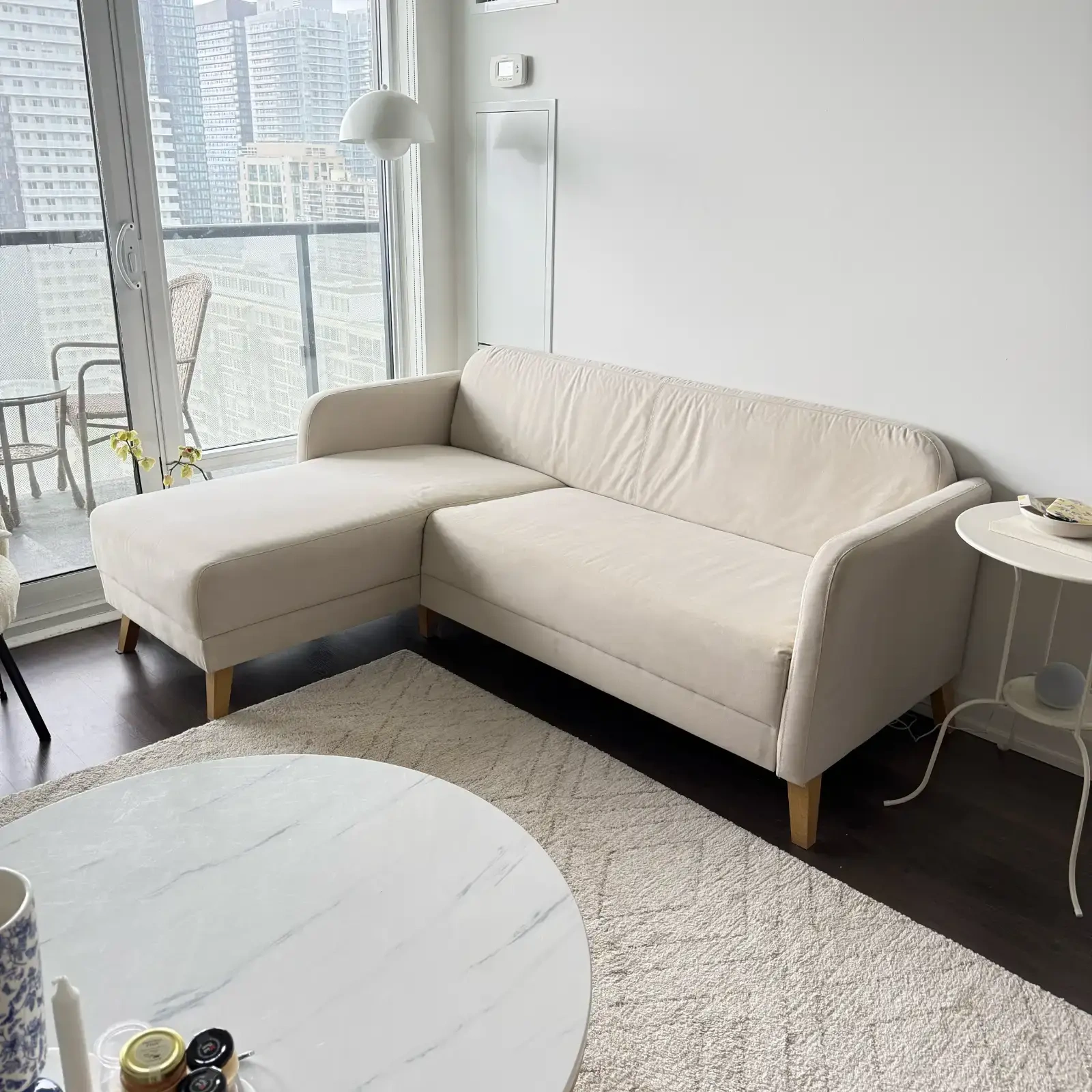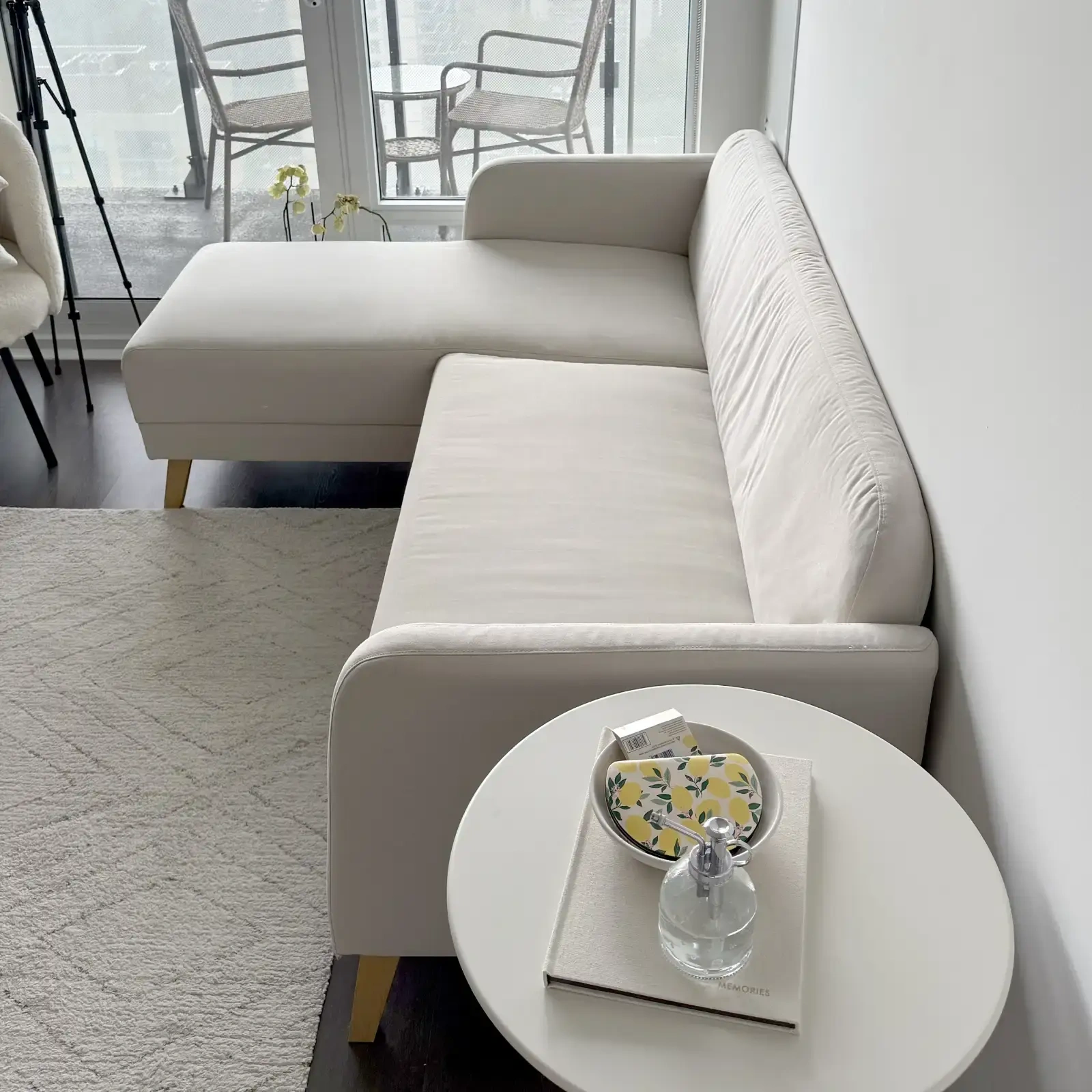 Original cost ; $599+tax = $676.87 This cover is made from Vissle fabric in polyester, which is dope-dyed. The chaise lounge can be placed either to the left or right, so you can adapt the sofa to your space and your preferences.