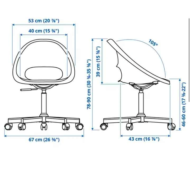 65Selling an IKEA LOBERGET / MALSKÄR swivel chair in great condition. Stylish, comfortable, and adjustable – ideal for study desks, home offices, or vanity setups. Dimensions: • Tested for: 110 kg (243 lb) • Width: 67 cm (26 3/8") • Depth: 67 cm (26 3/8") • Height: 90 cm (35 3/8") Price: $40 Pickup: 1300 Mississauga Valley Blvd.