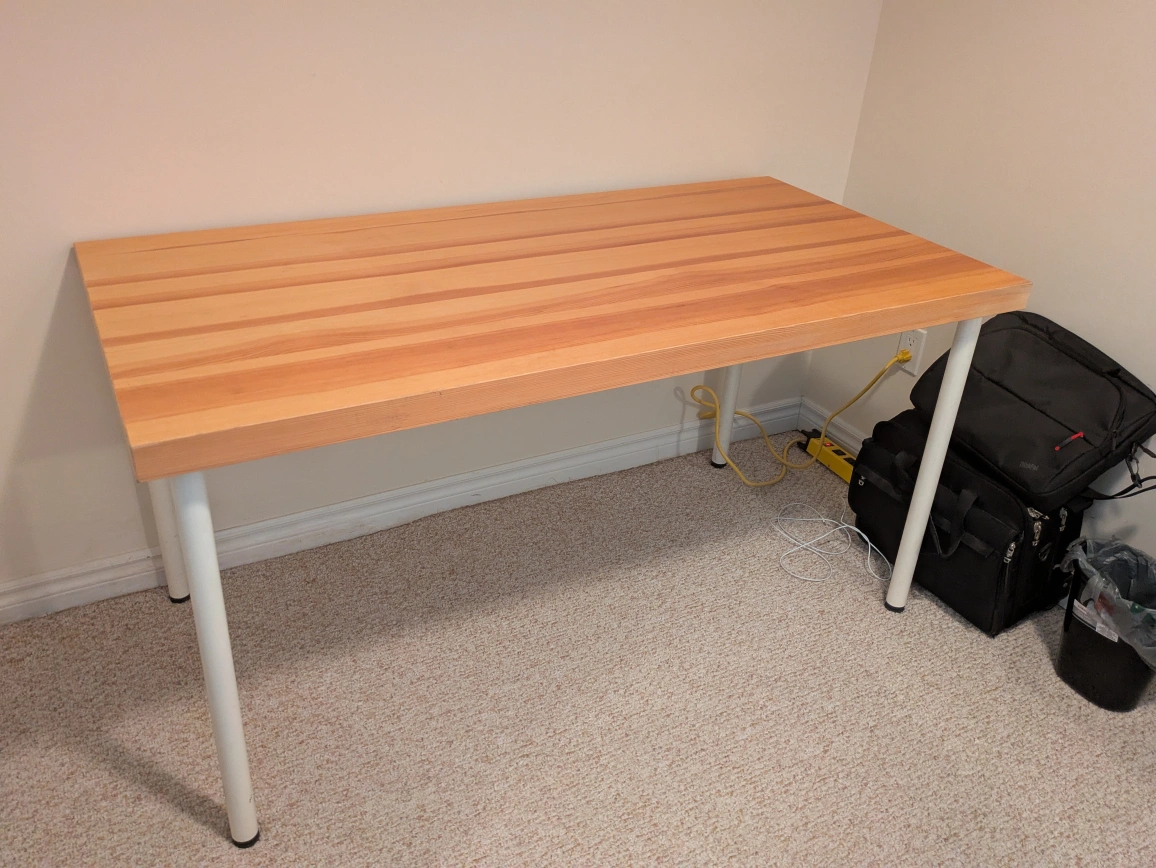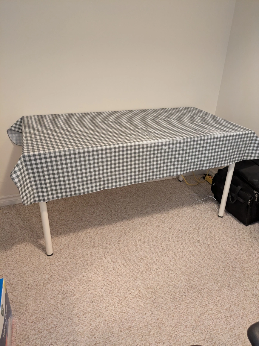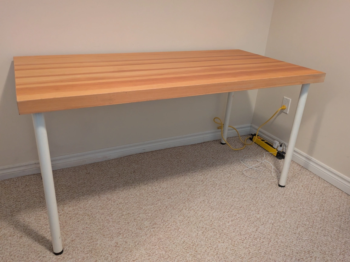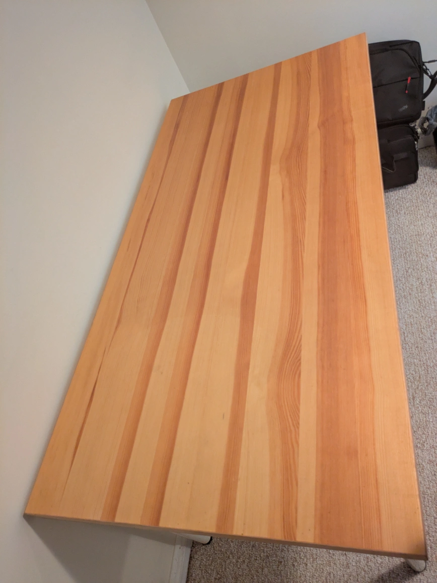 10A nice, solid wood table with four white metal legs. Perfect for a quiet reading nook. Long Table excellent condition with removable legs LxHxW 4'9" x 2'5" x 2'5.5. $80 OBO. Pick up only. Cash only no e-transfer.