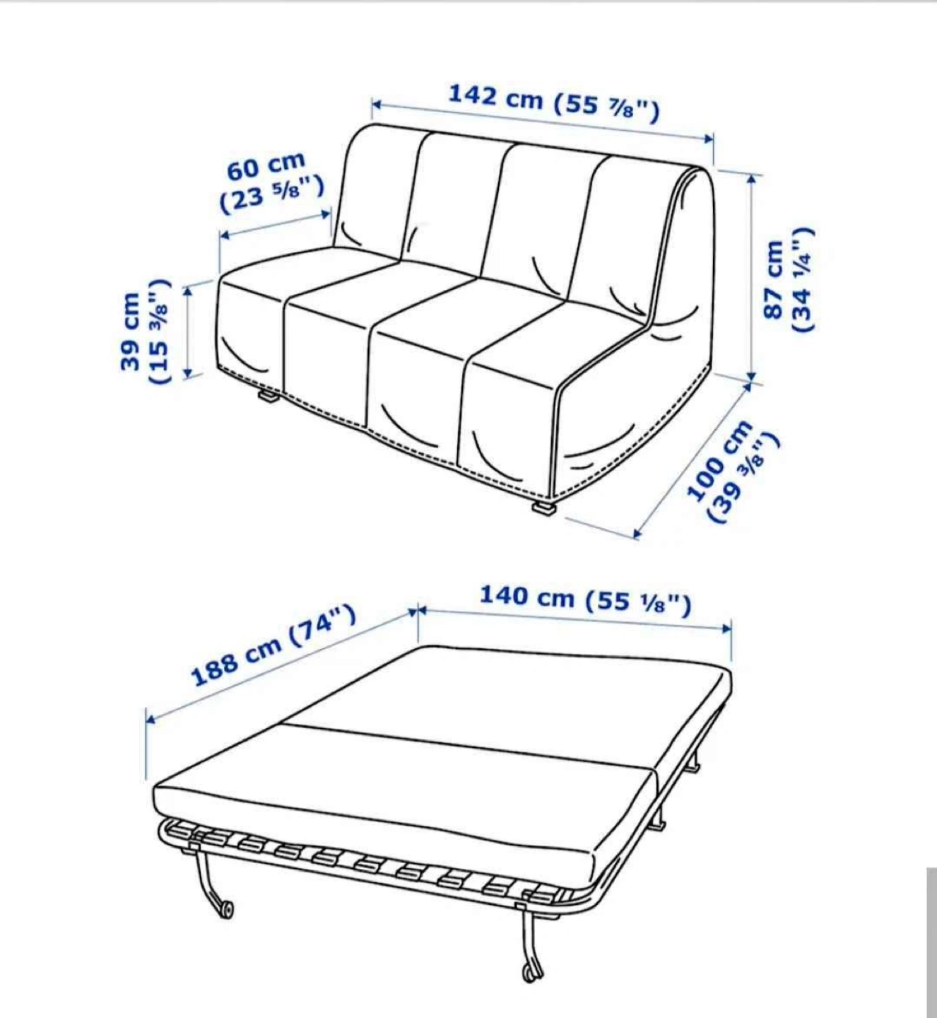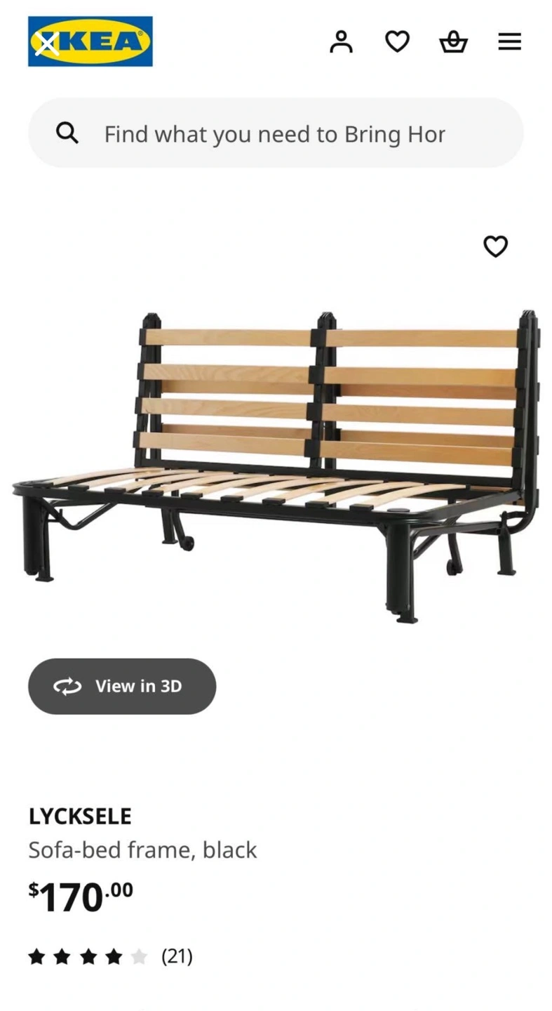 15IKEA LYCKSELE sofa-bed frame. Black. Used, good condition. Measurements in image. Easy to assemble and disassemble.