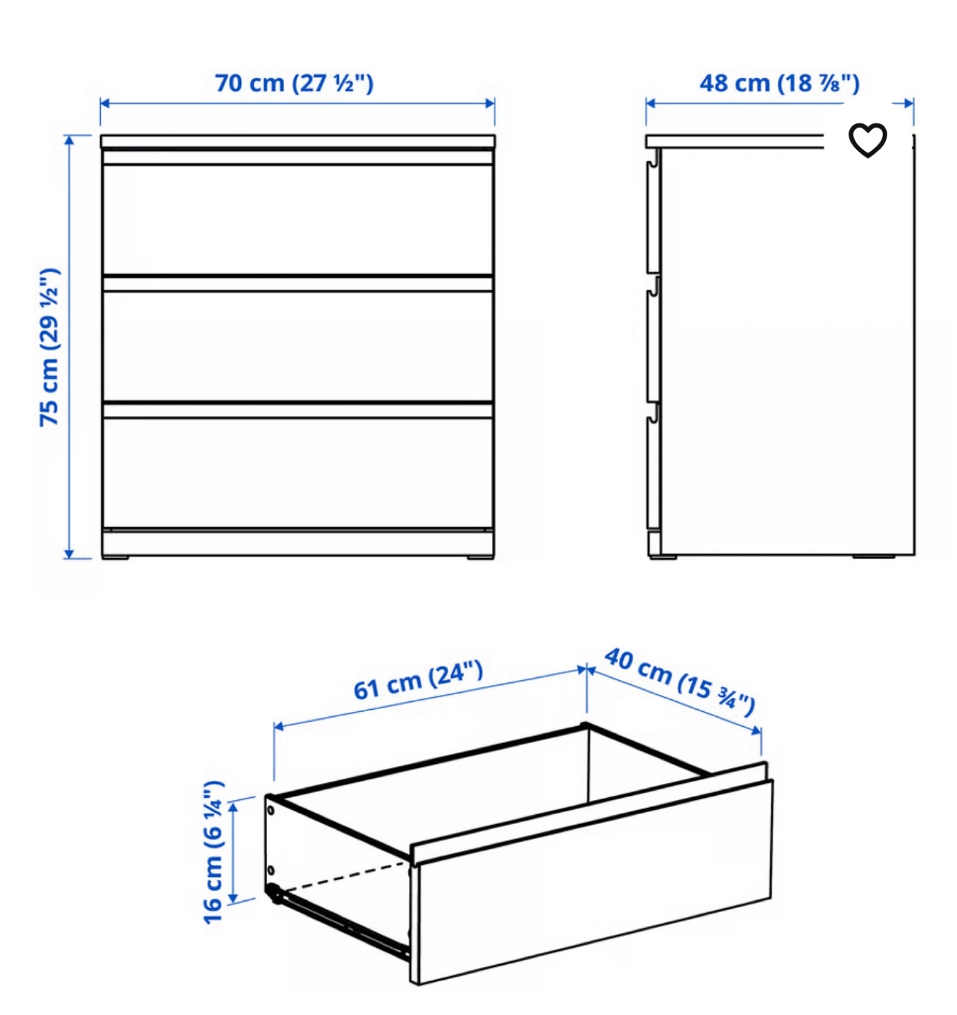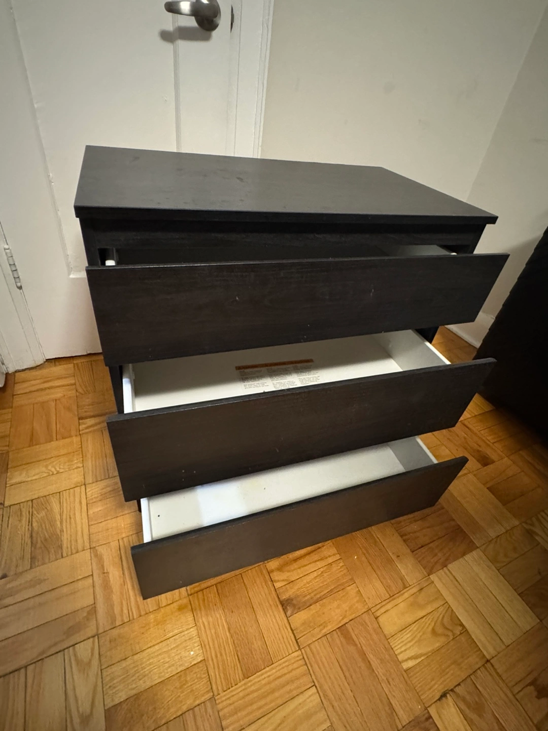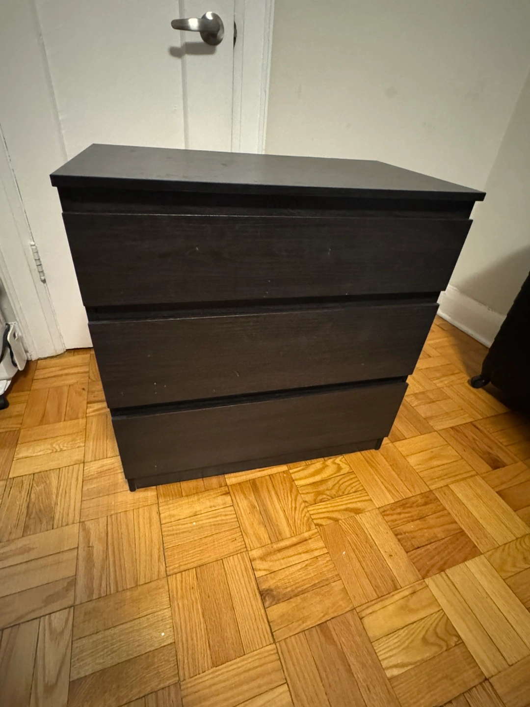 Selling a gently used IKEA Malm 3-drawer dresser in black-brown. It's a great piece for adding storage to any room. Perfect for clothes or other items you want to keep organized!