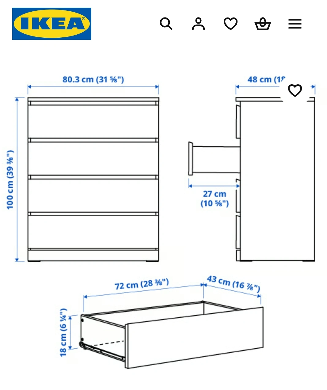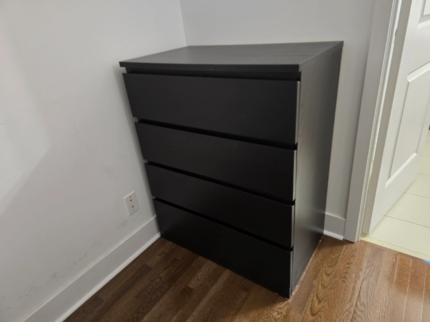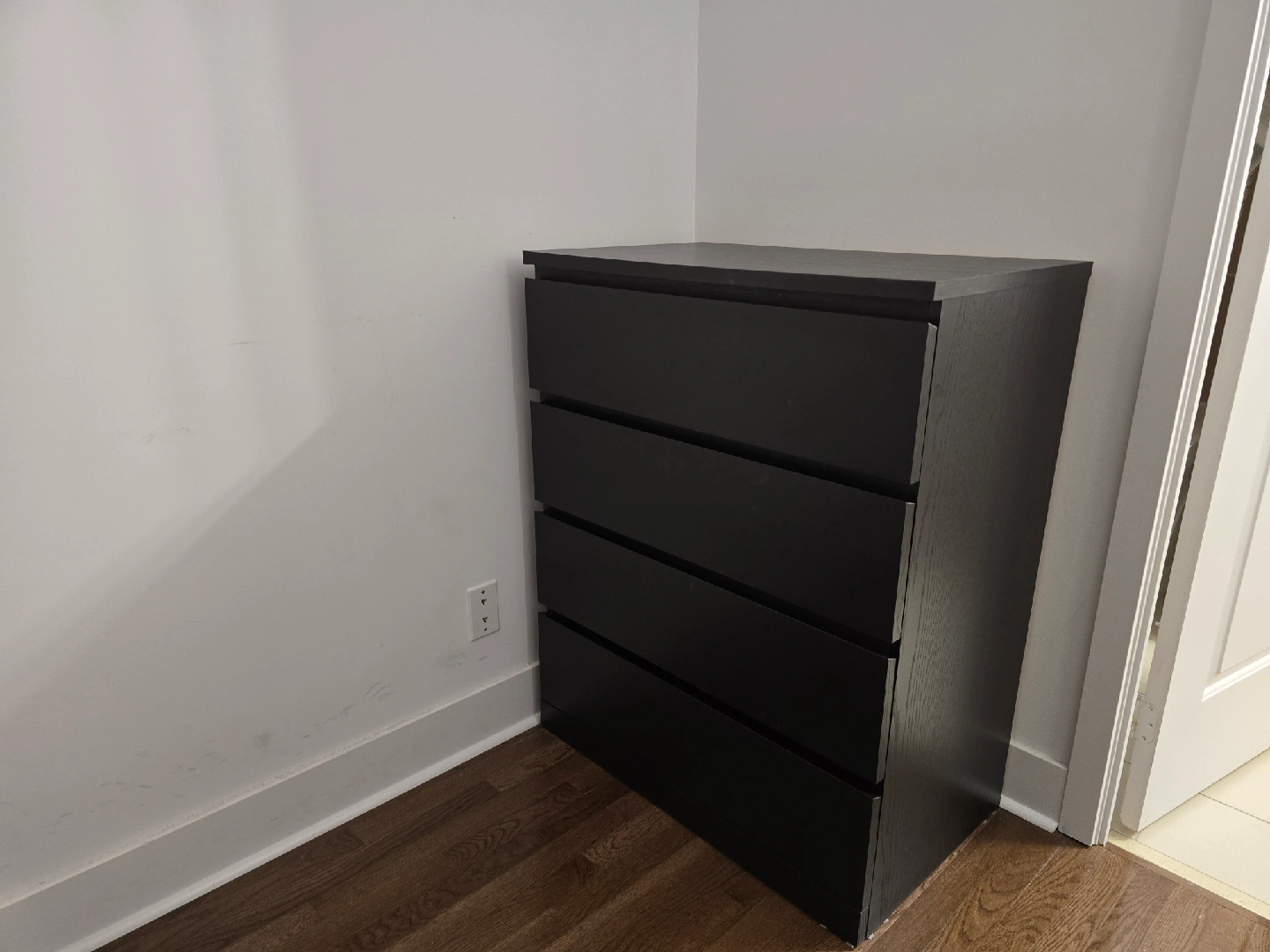 Selling my IKEA MALM 4-drawer chest in black-brown! The dimensions are approximately 100 cm (39 3/8") in height, 80.3 cm (31 1/2") in width, and 48 cm (18 7/8") in depth. Perfect for adding storage to any room! Pick up location: Yonge & Norton (near North York Centre Station)