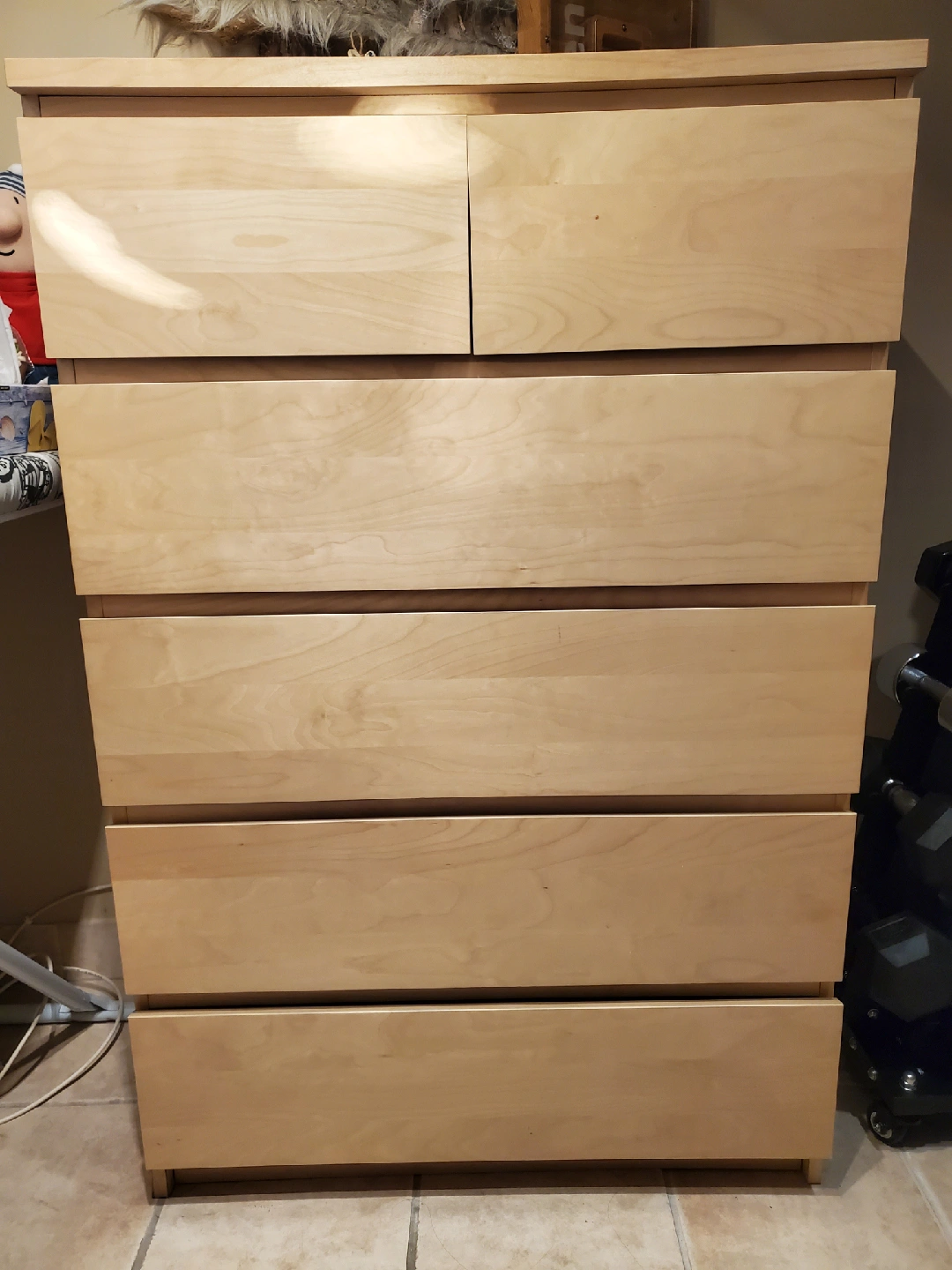 60Selling a used IKEA Malm dresser with 6 drawers in a birch veneer finish. It's a great piece for adding storage to any bedroom or living space. The dresser is in good condition and ready for a new home!
