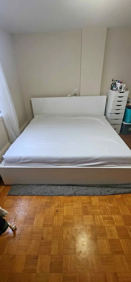 152 years old set of bed frame and mattress. Decent quality bed frame from Ikea MALM line up and mid-tier memory foam bed from Douglas. Frame and mattress are still in good quality. The mattress cover can easily remove to wash.