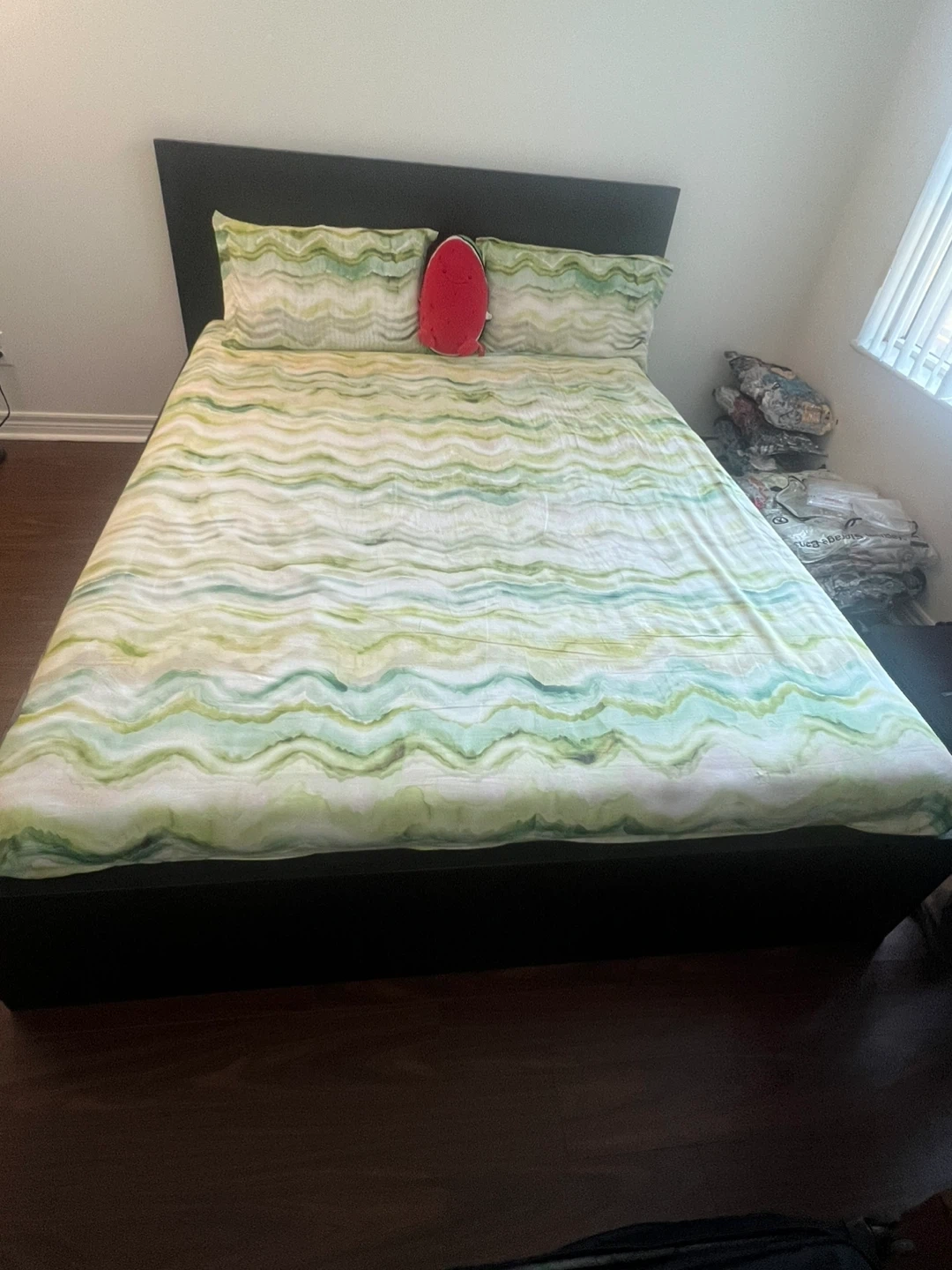 71Selling an almost new IKEA Malm Queen size bed frame in black, complete with a mattress. The bed frame and mattress, both are in great condition and comes with all the necessary slats. It also has convenient under-bed 4 storage drawers. I bought Mattress for $1100. Selling it for $400. It’s really good in condition. I’m only selling because I am moving. Bed - $150 - Sold 4 Bed Drawers - $90 - Available Mattress - $400 - Available