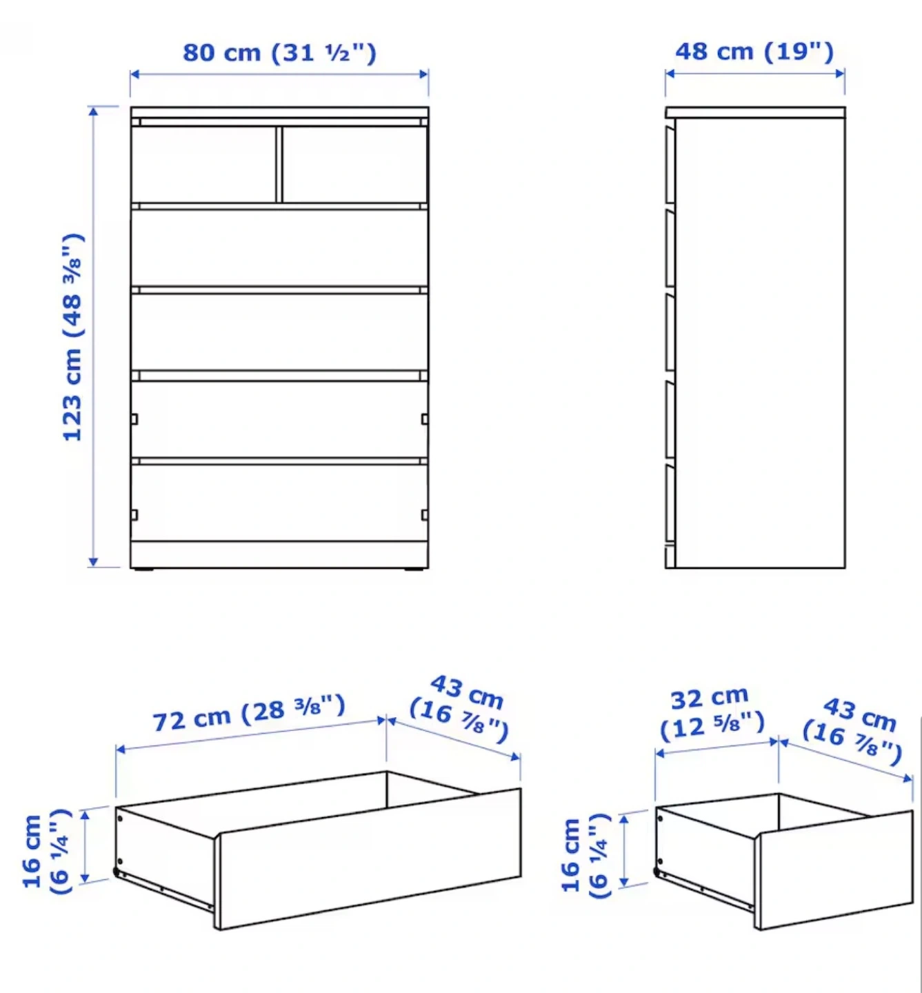 IKEA MALM brown dresser with 6 drawers