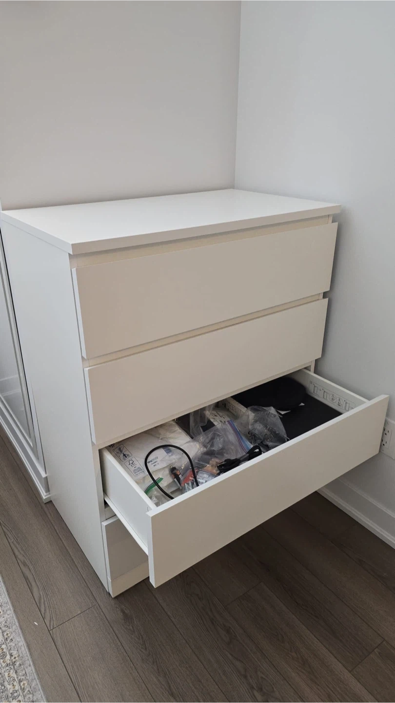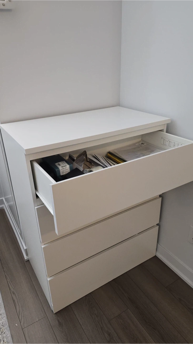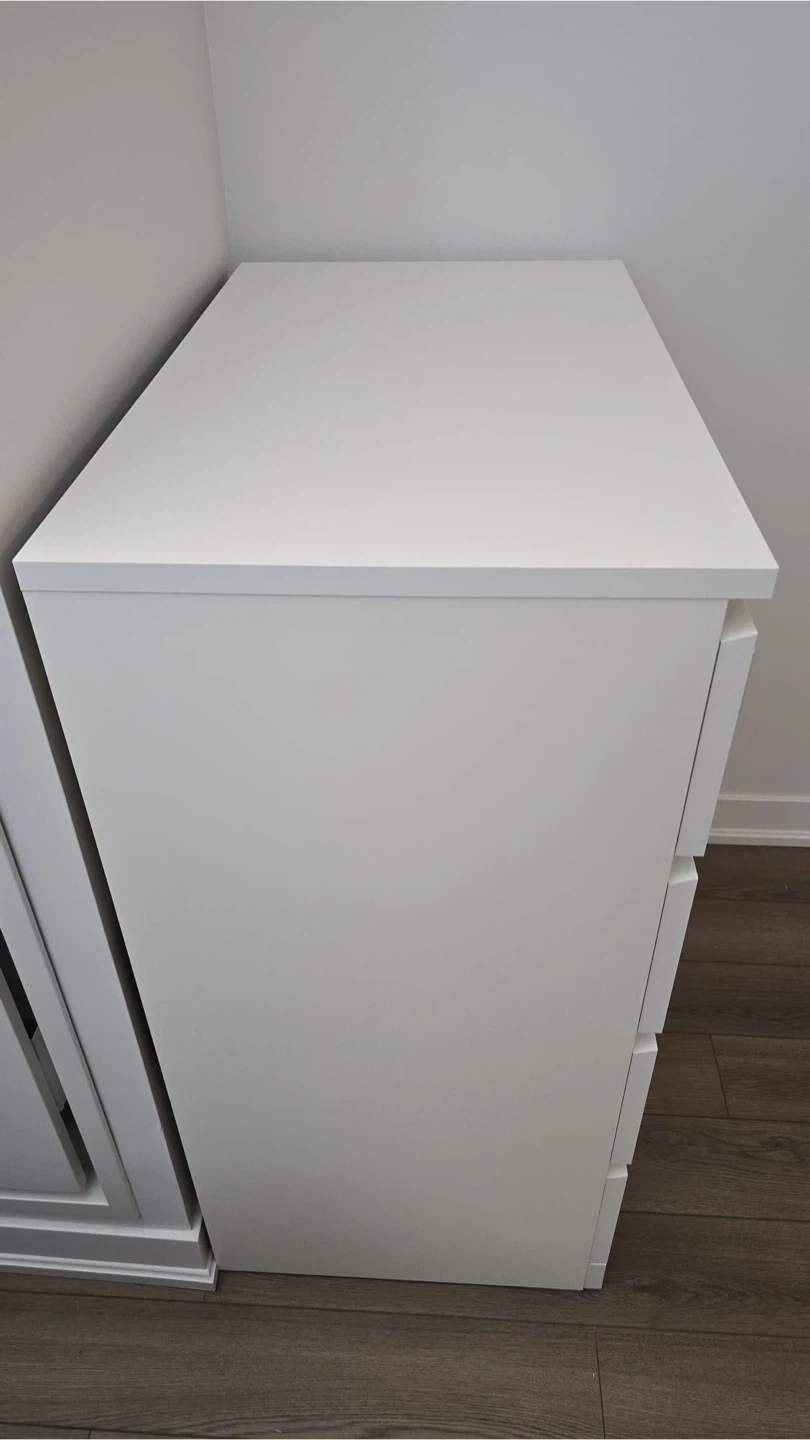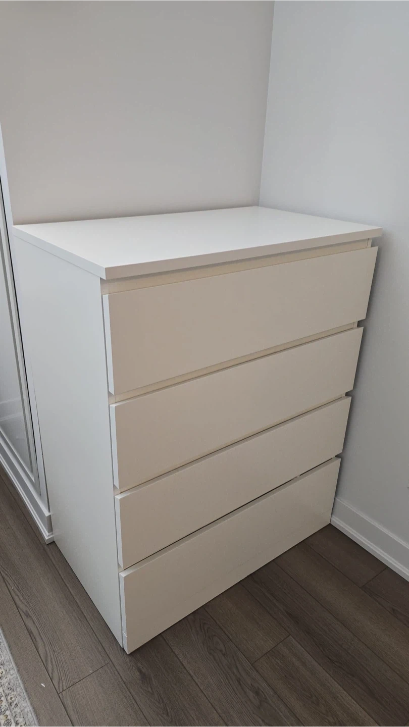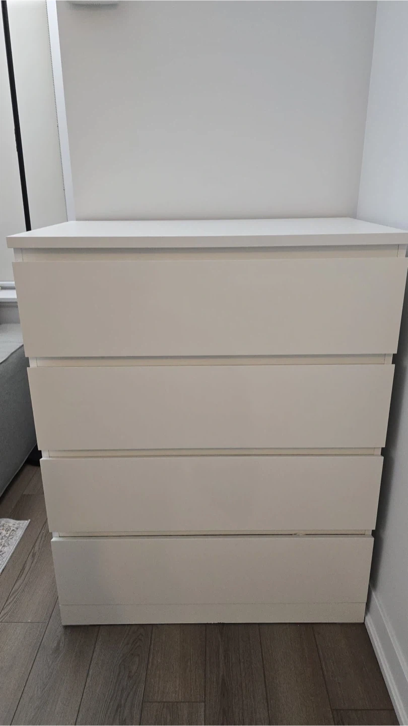 78Selling a white IKEA MALM 4-drawer dresser. It's in great condition and ready for a new home! Perfect for adding extra storage to any room. Only an year old Pickup only