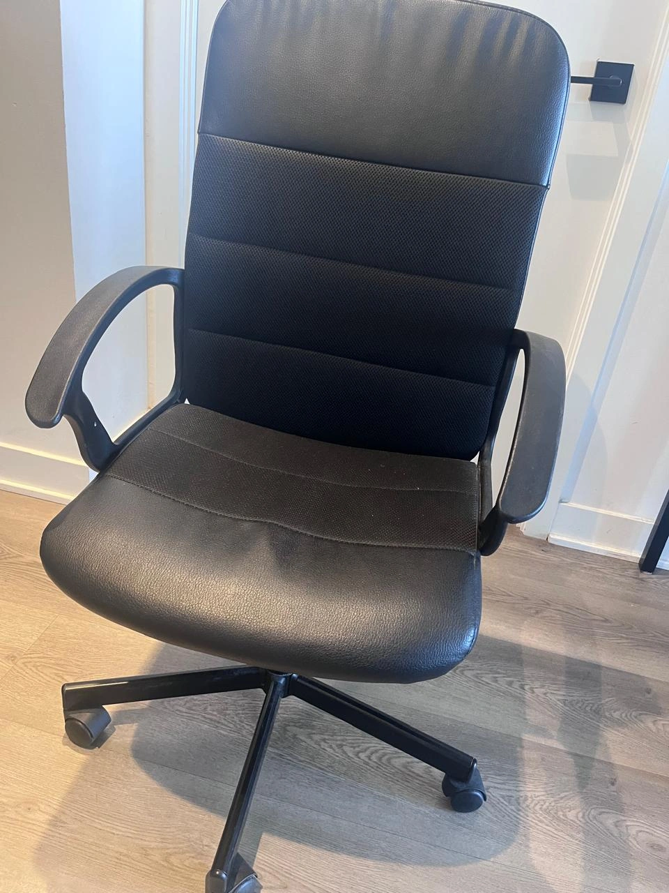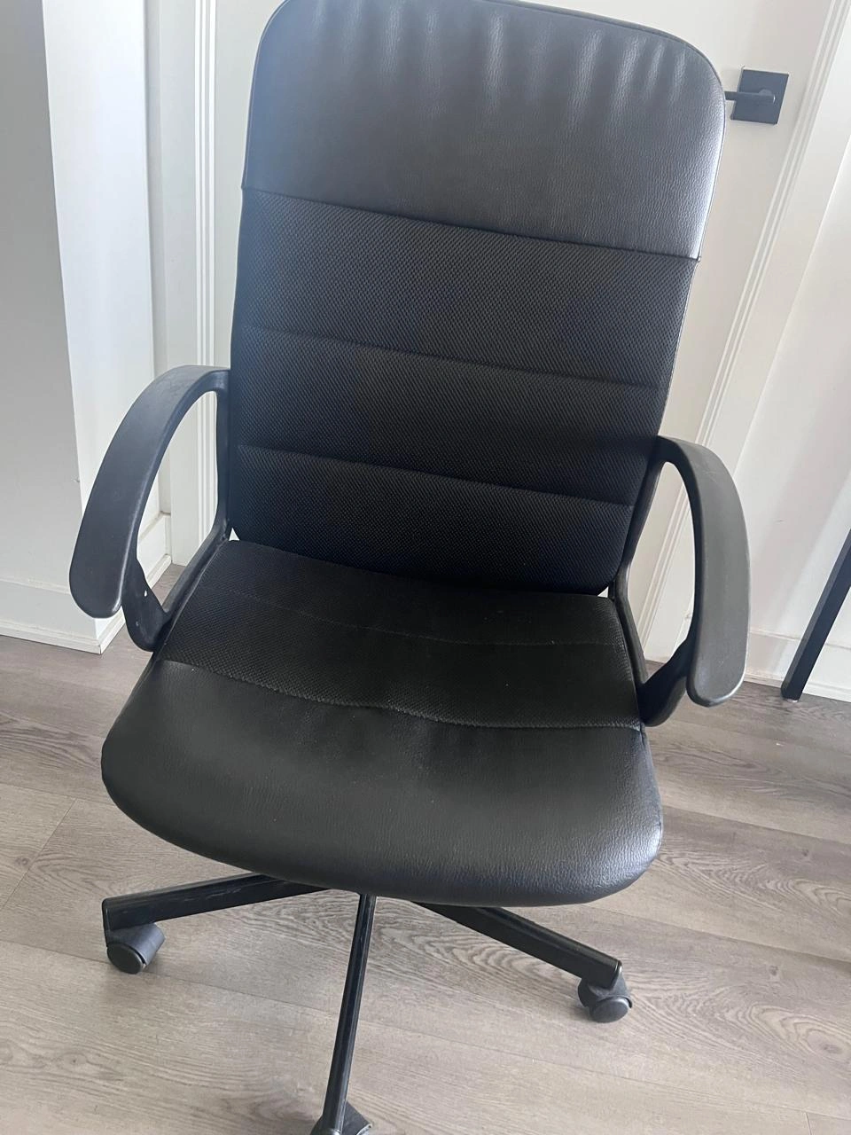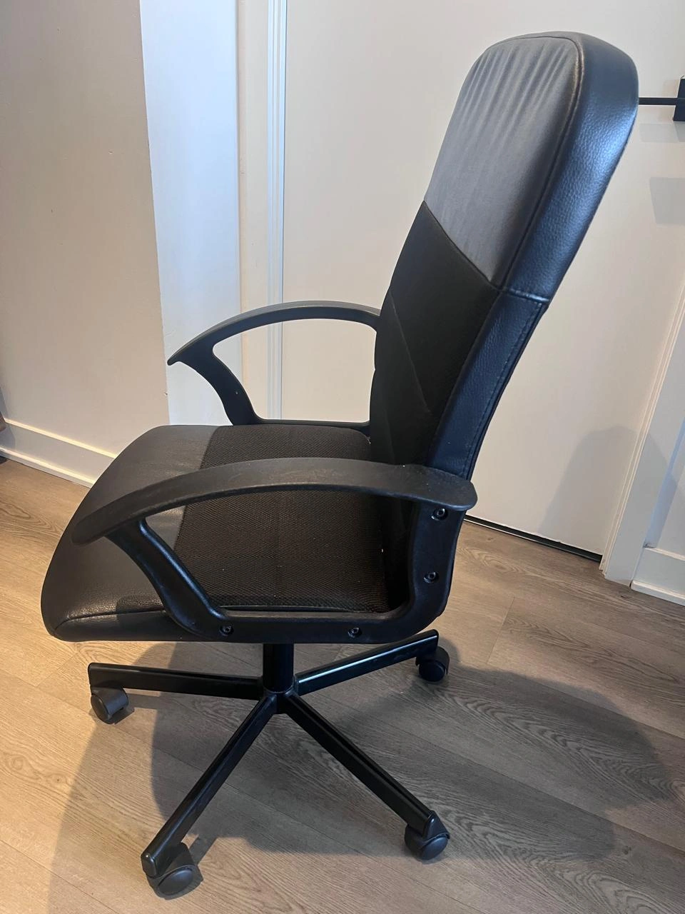 Selling a used IKEA Markus office chair in black. It's in good condition and ready for a new home office setup. This chair offers great support and comfort for long hours of work or study. Perfect for anyone looking for an affordable and reliable office chair!