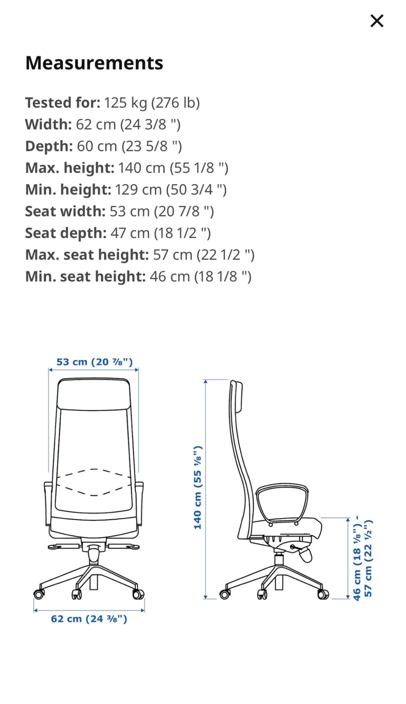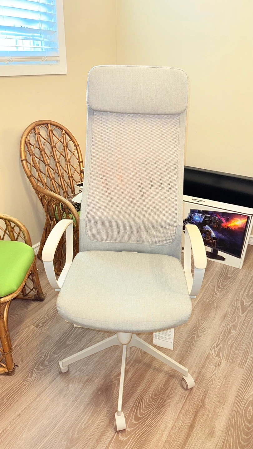 47IKEA Markus Office Chair VISSLE light gray Article Number: 305.218.62 Official dealer site to product: https://www.ikea.com/ca/en/p/markus-office-chair-vissle-light-gray-30521862/ This ergonomic office chair keeps you comfy and focused with features like a manually adjustable tilt tension, and head-/armrests to help relax the muscles in your neck and back. 10 year warranty.