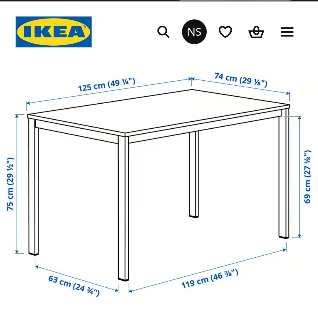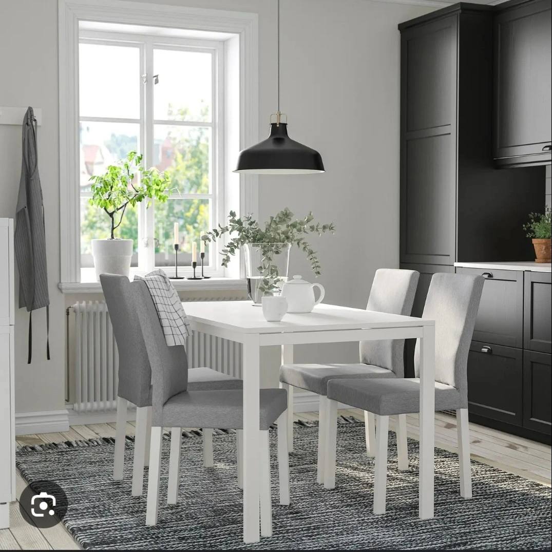 Selling a white IKEA MELTORP dining table. It's in great shape and ready for a new home. The table measures approximately 125 cm in length and 75 cm in width, making it a perfect size for smaller dining areas or kitchens. It's super easy to assemble and disassemble if you need to move it. The simple design fits with any decor! Originally bought for 120$.