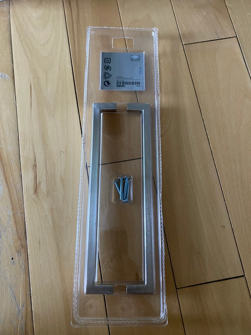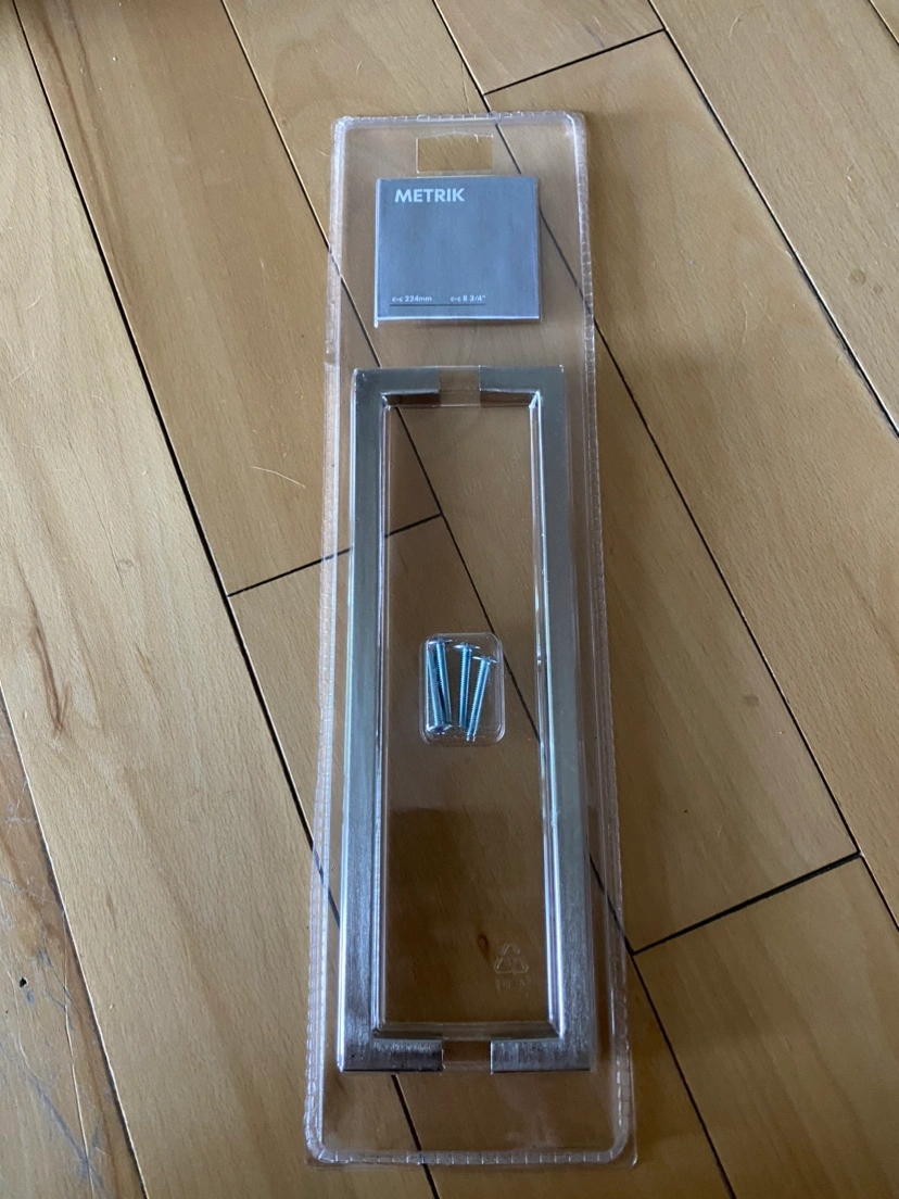 10IKEA Metrik Cabinet Drawer Pull Handles Size is 8 3/4 inches Color is Brushed Nickel Model #401.388.35 discontinued $6 obo each pack of 2 pulls or $300 for all (53 packs/128 handles available) First come first served, no holds, cash or etransfer only Pick up in West Kelowna