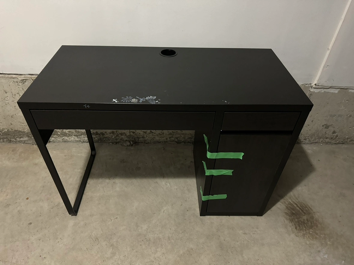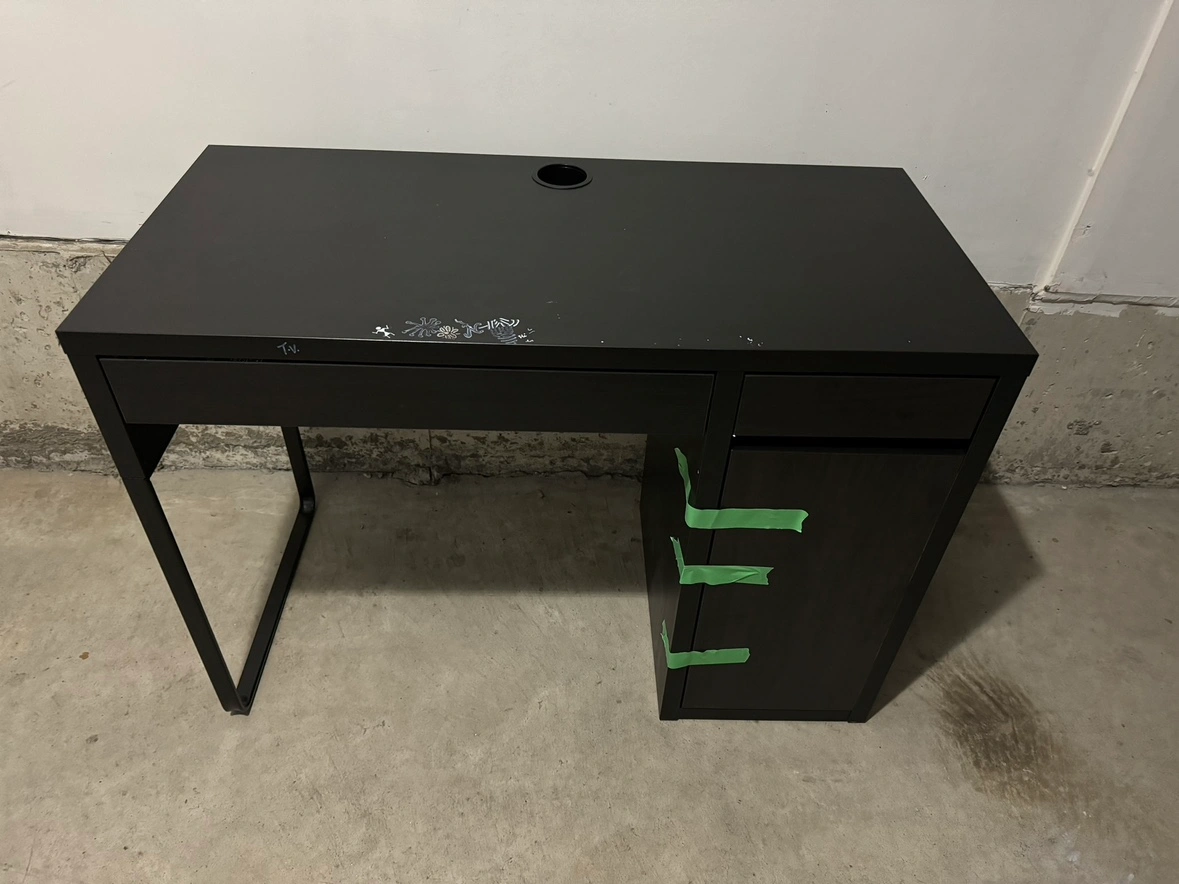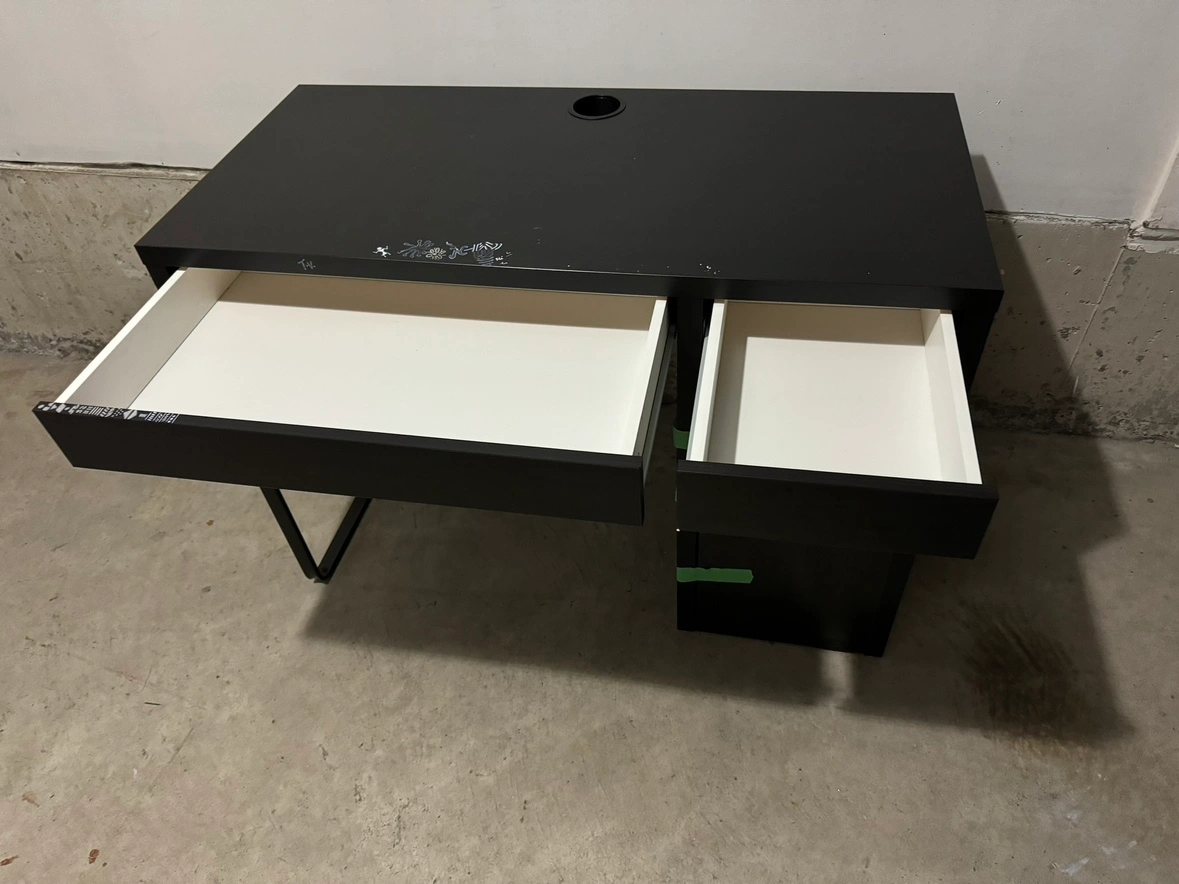 This desk has a black/brown finish, two drawers and a document storage space right below the drawer. The desk measures 105 cm in width, 50 cm in depth, and 75 cm in height. It includes a cable management opening as well. Great for students or work from home candidates. Only available for pickup Cash accepted