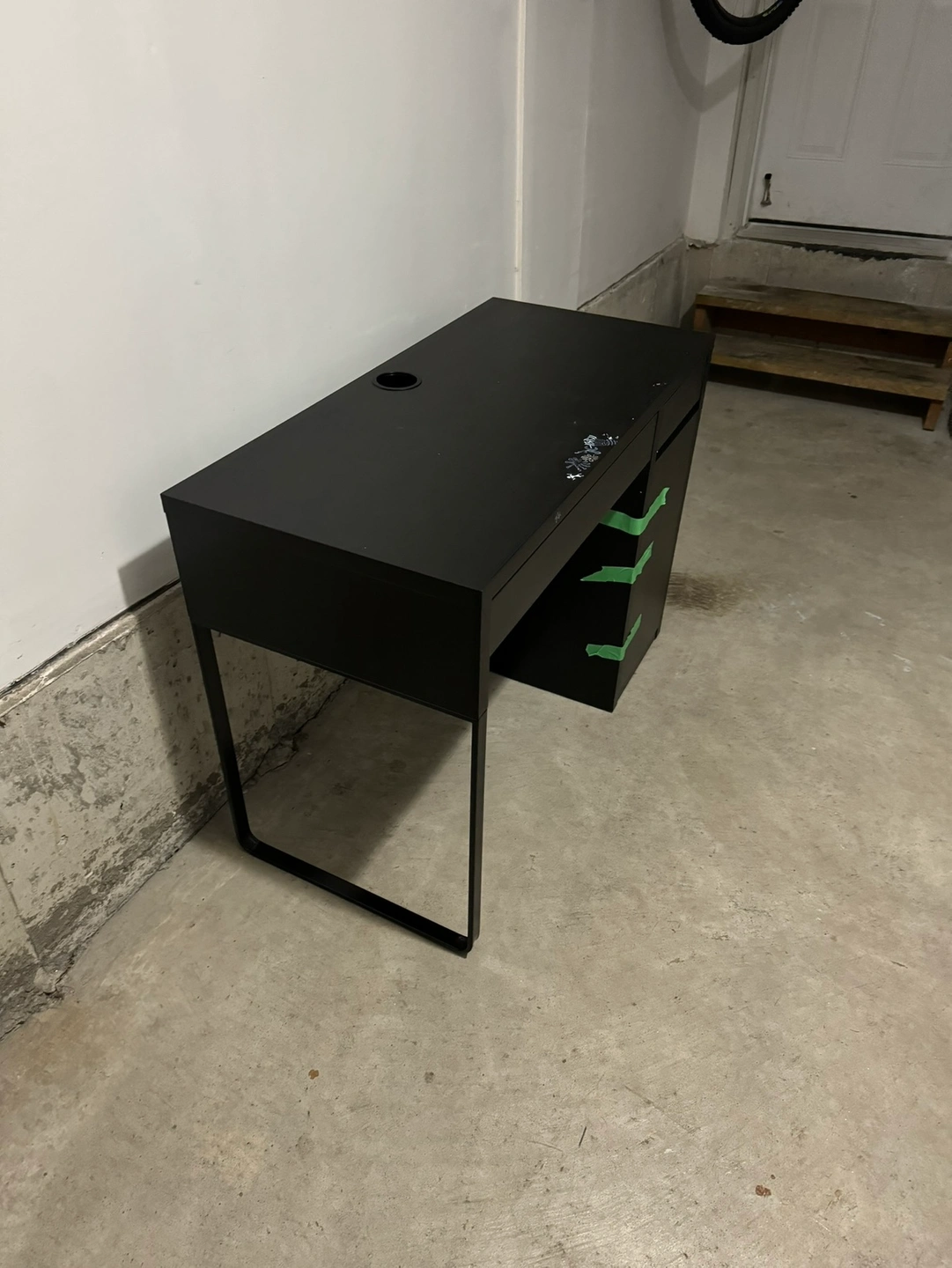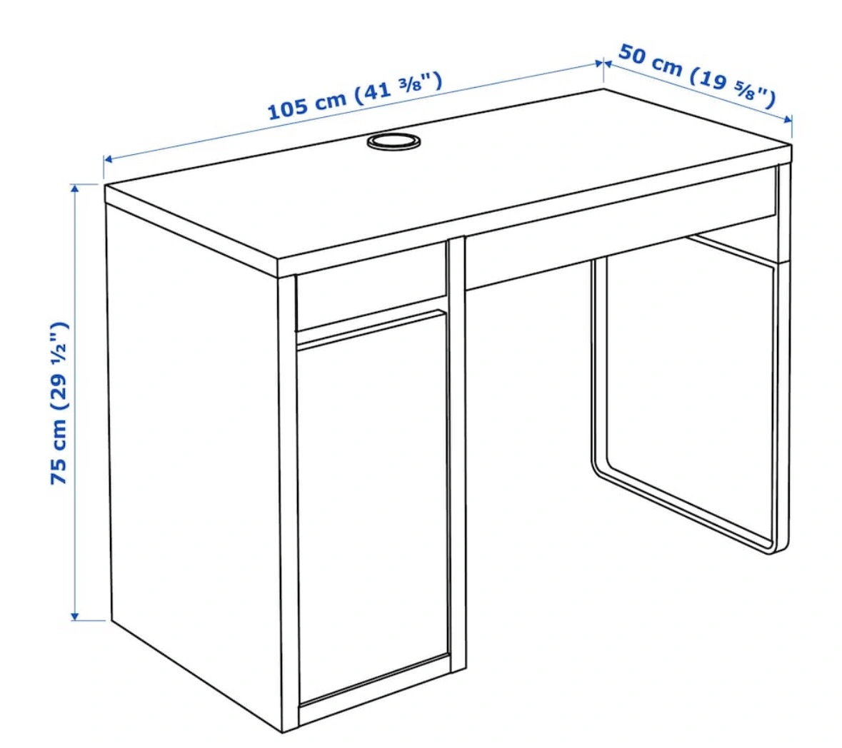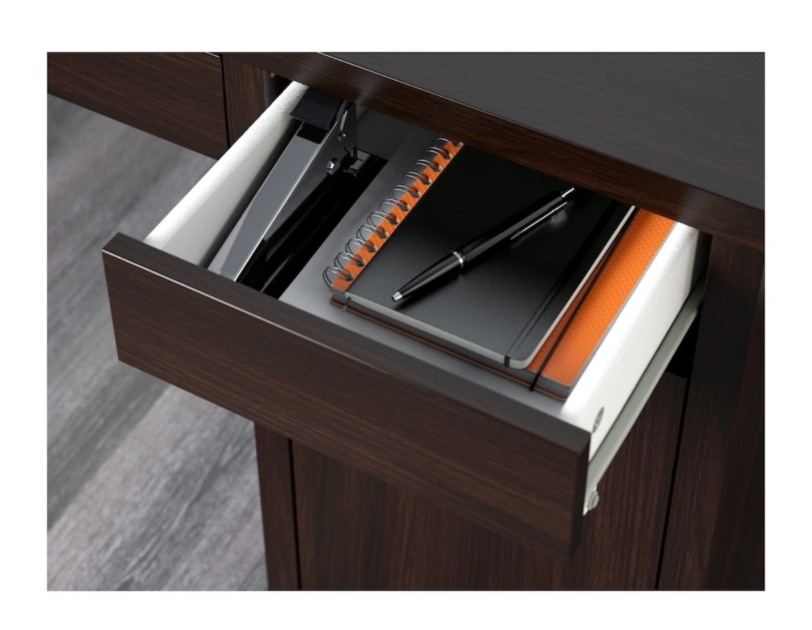 This desk has a black/brown finish, two drawers and a document storage space right below the drawer. The desk measures 105 cm in width, 50 cm in depth, and 75 cm in height. It includes a cable management opening as well. Great for students or work from home candidates. Only available for pickup Cash accepted