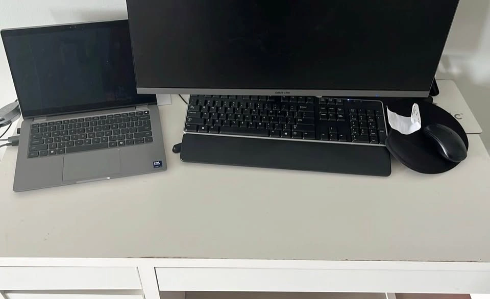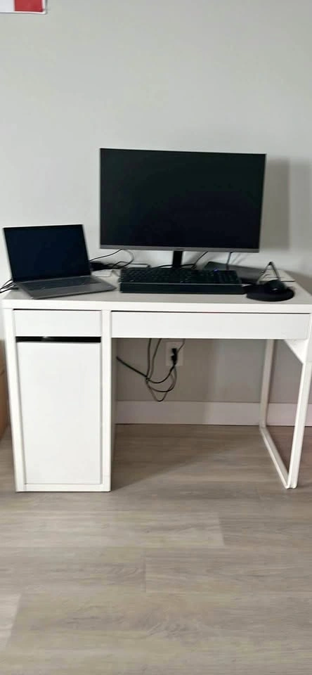 Selling a well-cared-for IKEA MICKE desk, white finish, measuring 105 × 50 cm (41 ⅜ × 19 5⁄8 in). Ideal for compact workspaces, home offices, or gaming setups. • Condition: Gently used and in good shape—no major scratches or damage, just minor signs of previous use. • Features: Clean Scandinavian design, discreet cable management at the back, sturdy and functional. • Original price: CA $149 new