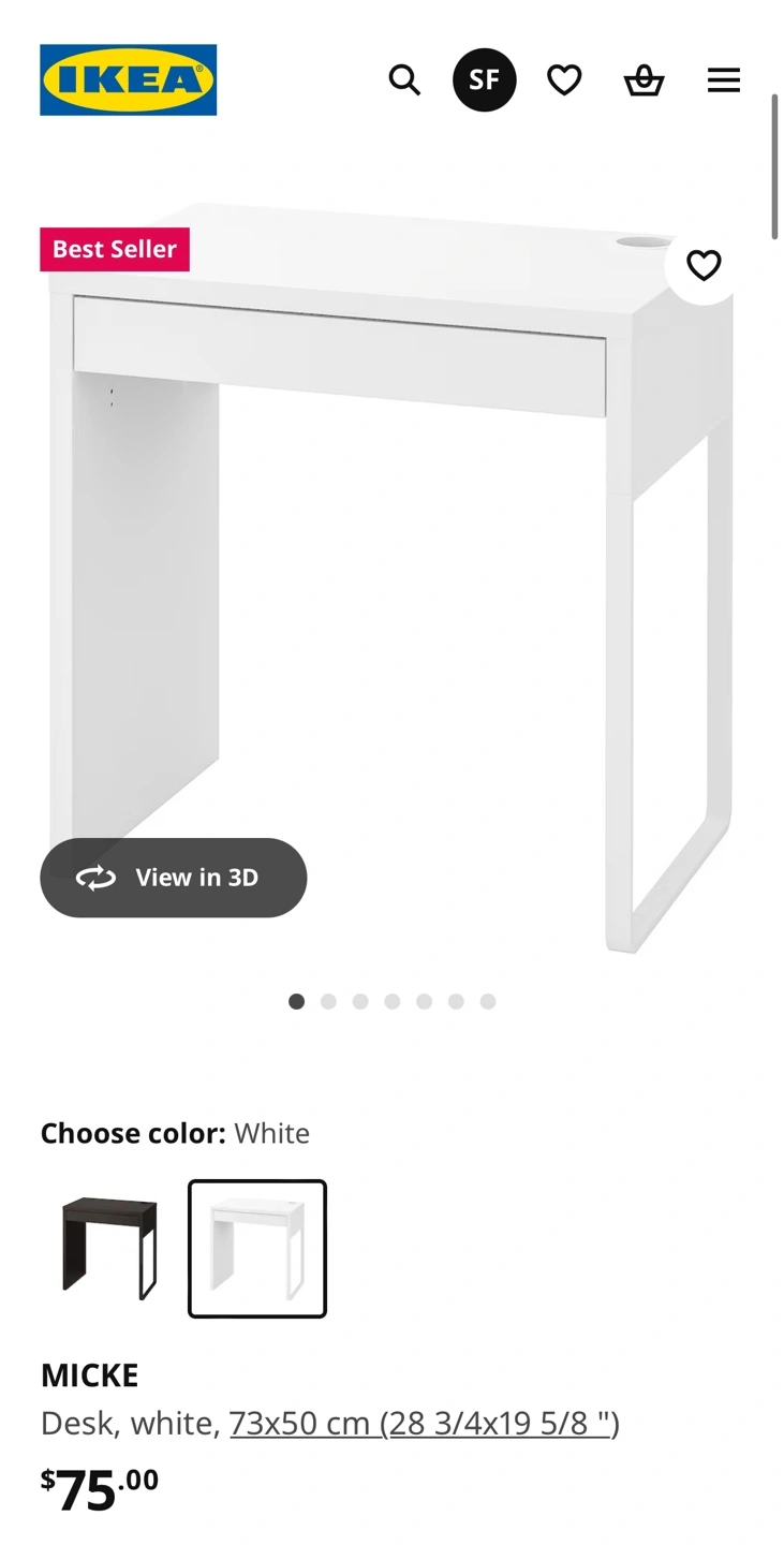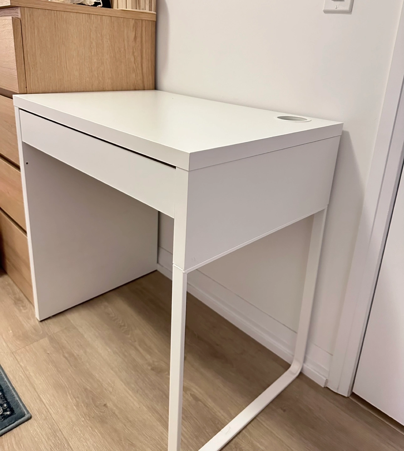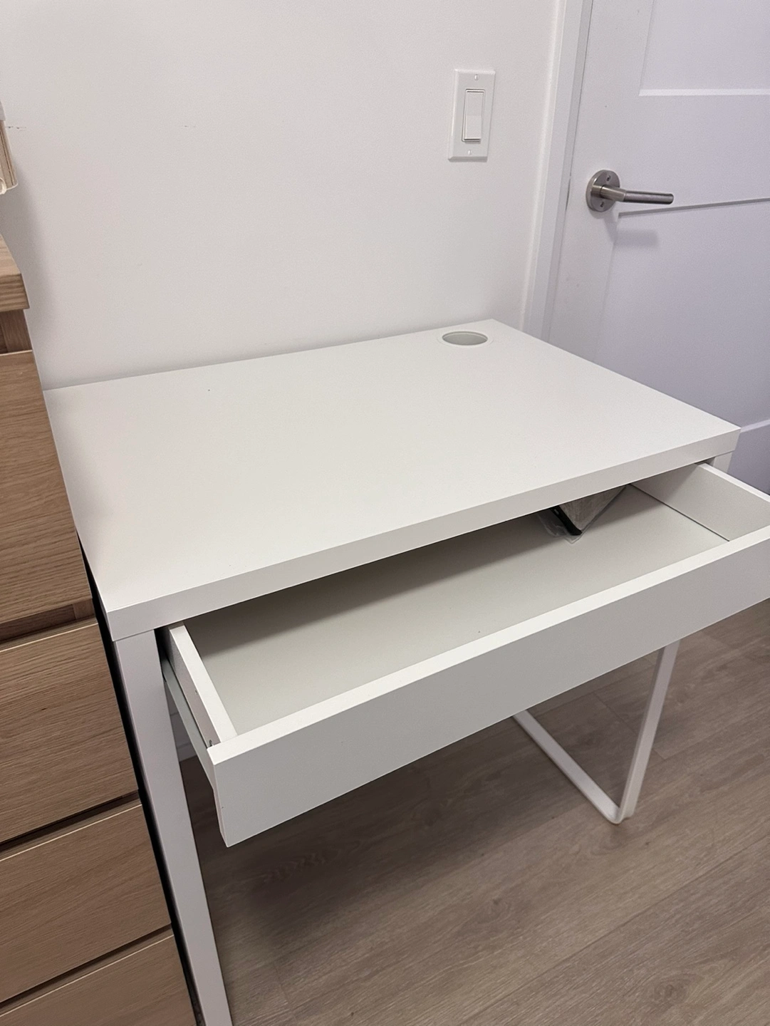 Moving Out Sale Ikea small white desk. One drawer. Good for small spaces! Bought only a few months ago selling because i’m moving out. In perfect condition no stain or scratches. Like brand new, Bought for $75 only selling for $55 Fully assembled and ready for pick up!