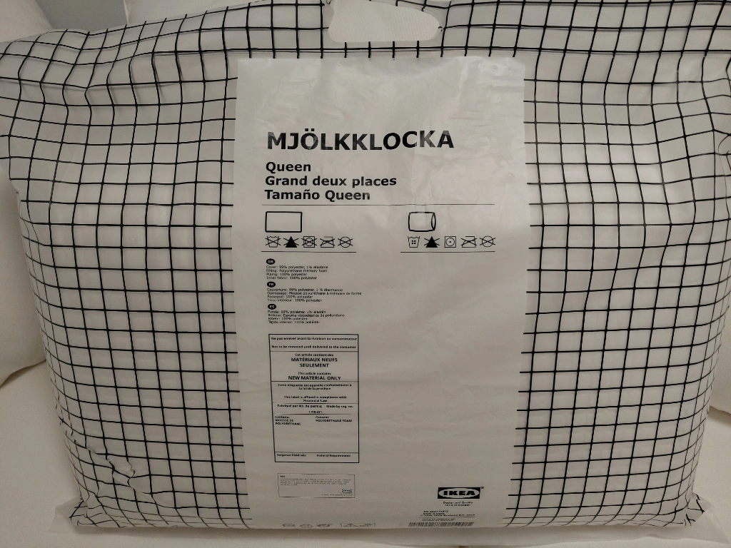 Selling a brand new IKEA MJÖLKKLOCKA queen size pillow! It's still in the original packaging. This pillow contains new material only and is filled with polyurethane foam