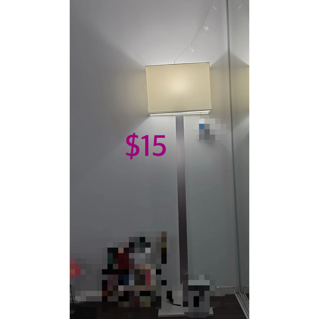 10Tall floor lamp. Rectangular shade. Minimalist design. Good condition. $15.