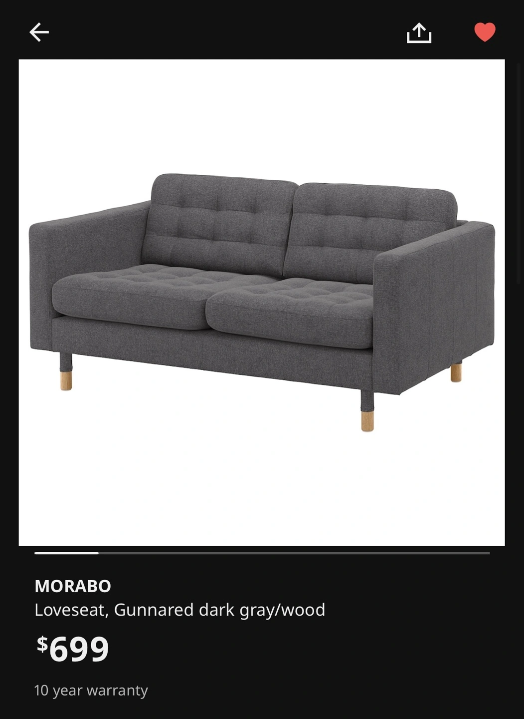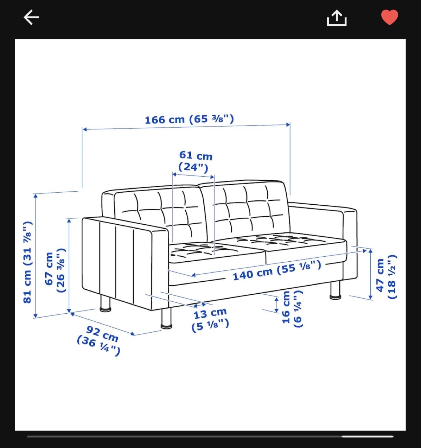 10- In perfect condition, with no stains, tears, or damage - Can comfortably sit 3 people. - Currently sells for $699 + tax at IKEA. - From a clean, smoke-free and pet-free home. - Dimensions are shown in the last image. - Pick up near Hwy7 & Warden Ave.