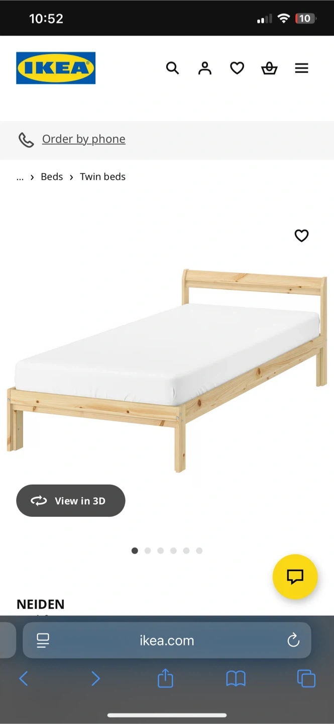 10Selling a barely used IKEA Neiden twin bed frame with mattress It's a simple and sturdy bed frame made of solid pine. The dimensions are approximately 195 cm (76 3/4") long and 101 cm (39 3/4") wide. Perfect for a kid's room or a small space! pet free/smoke free home