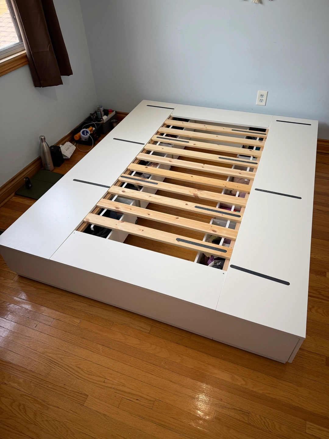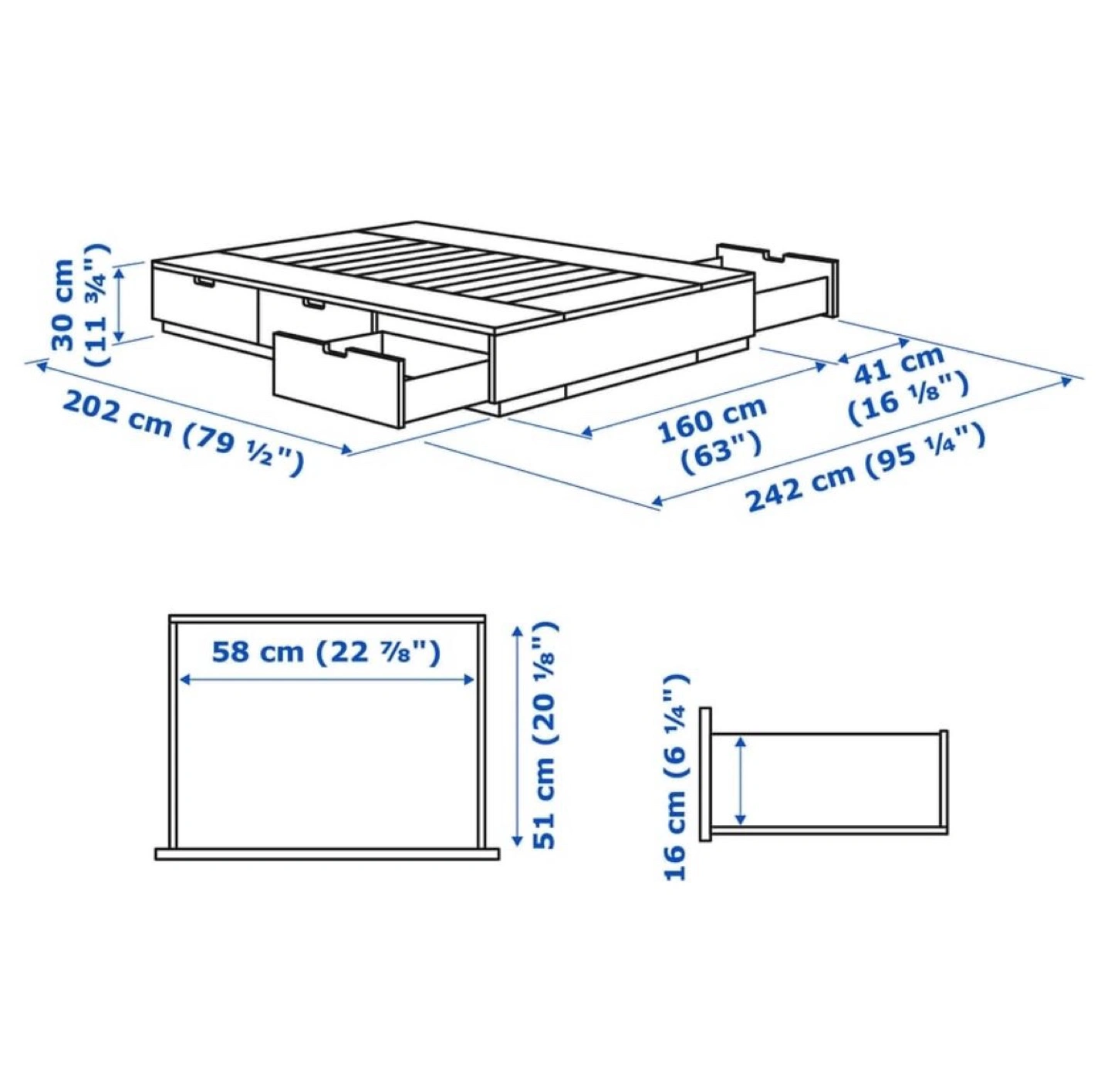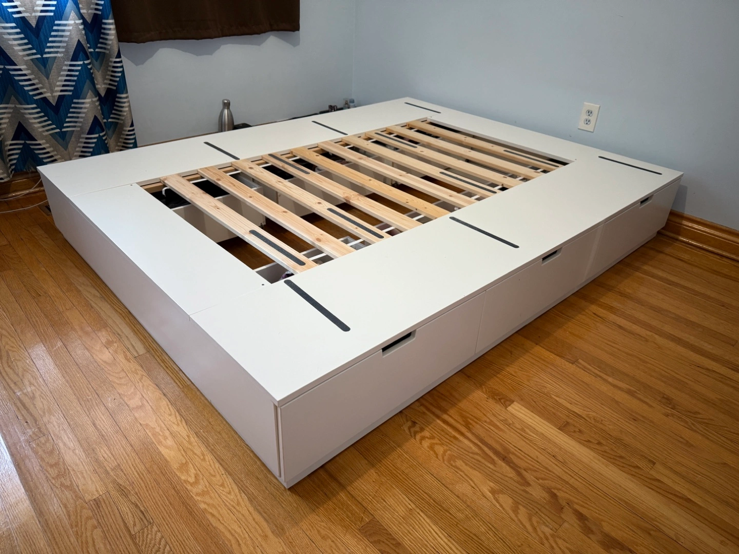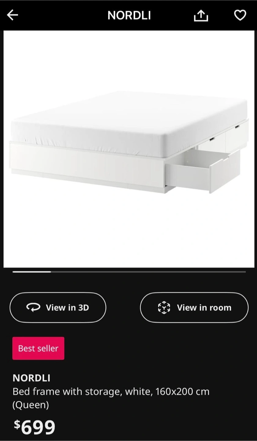 Selling a white IKEA Nordli queen bed frame with built-in storage! It's in great shape and super functional. The dimensions are 160x200 cm (Queen). Originally bought for $699.