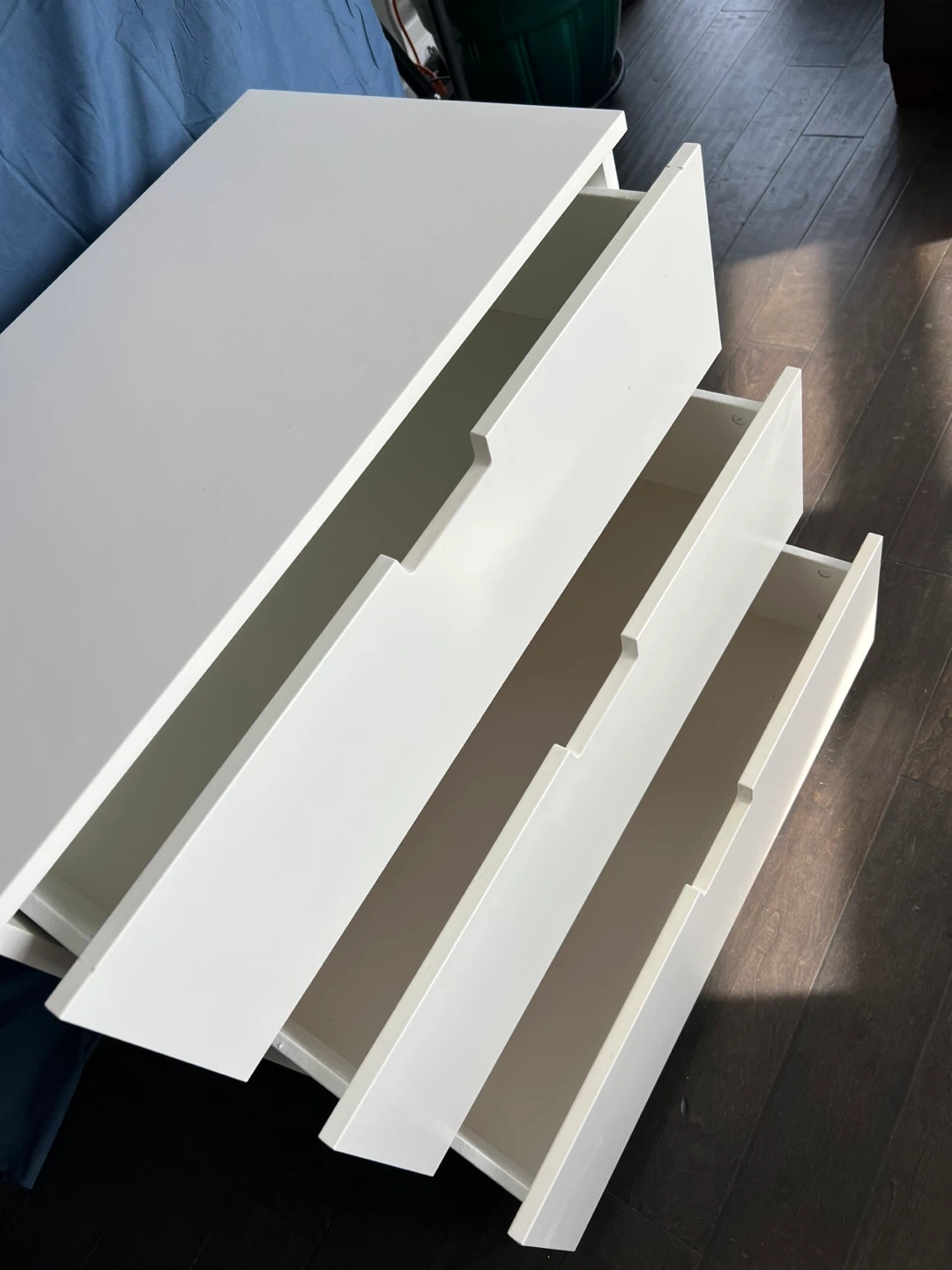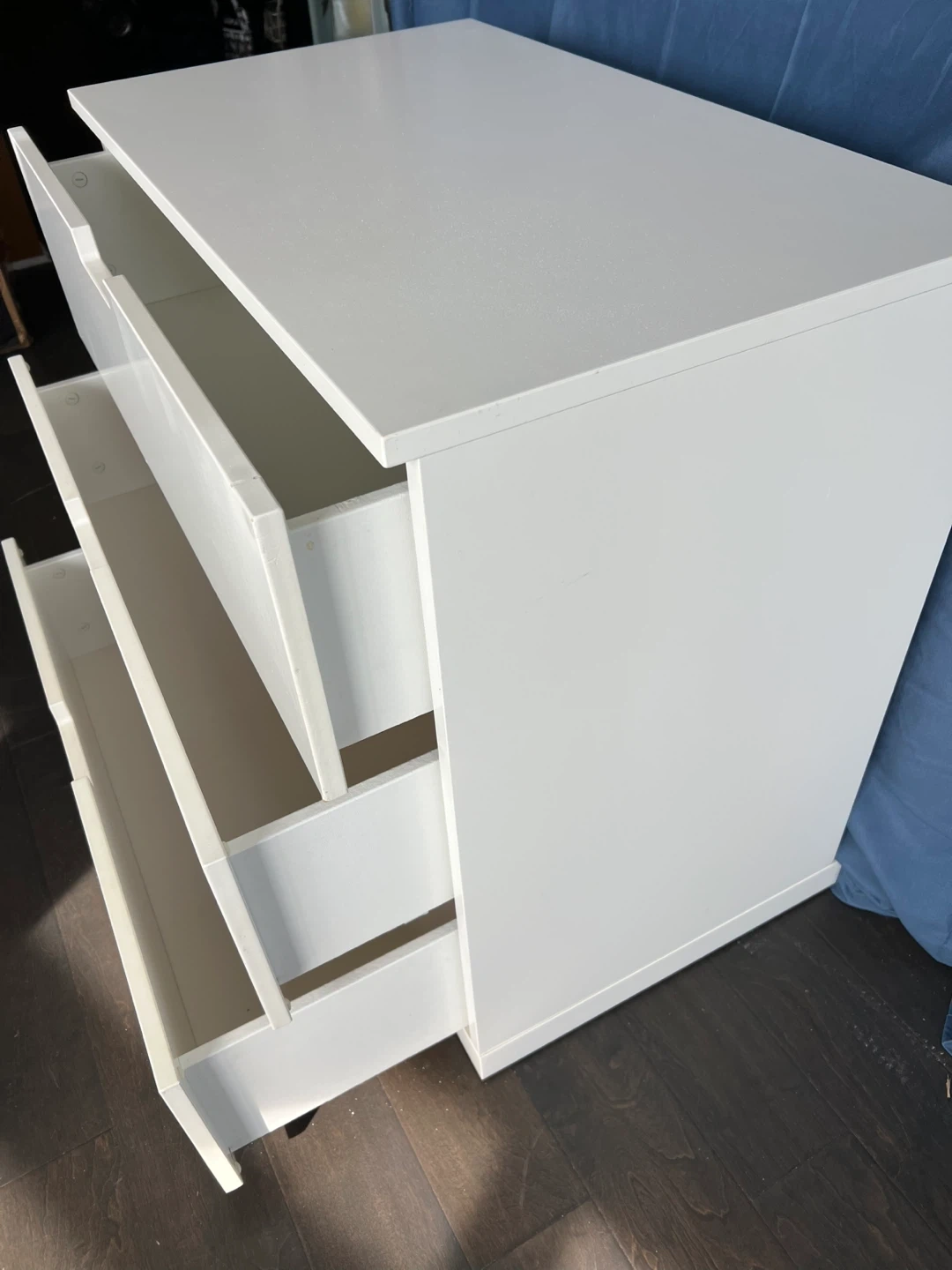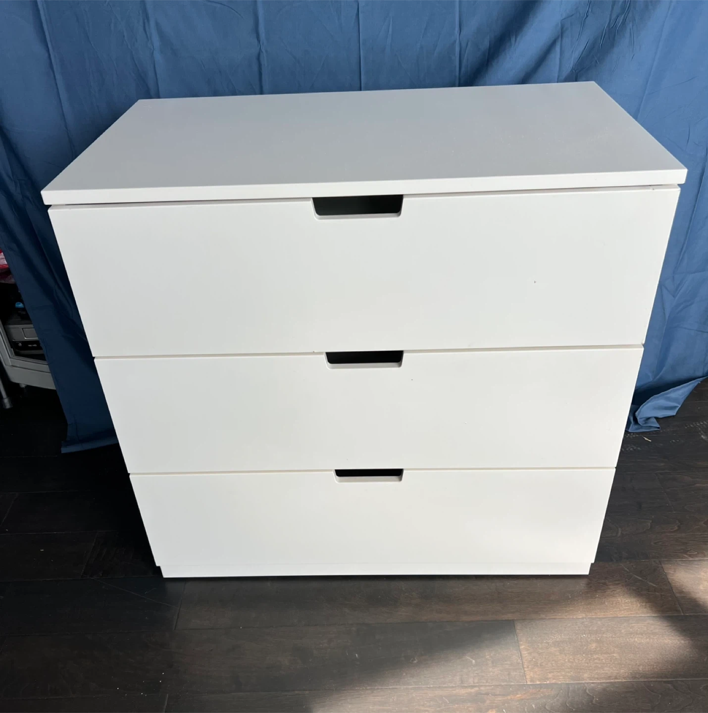 355This used IKEA NordLi dresser features three spacious drawers, made very SOLID not cheap particle board, & in very good shape, perfect for organizing your wardrobe. This clean, simple design will fit seamlessly into any bedroom or laundry decor. Specifications: * Number of Drawers: 3 * Colour: White * Style: Contemporary * Self closing doors Decluttering can feel like a chore, but hey, think of it as a treasure hunt where the prize is your own peace of mind. If item is still here, it's still available. First come first served. l accept cash or etransfers and live near the CN Tower. Delivery extra depending on location. Check out other items seller has. Always adding new items!! Keep checking back!!!