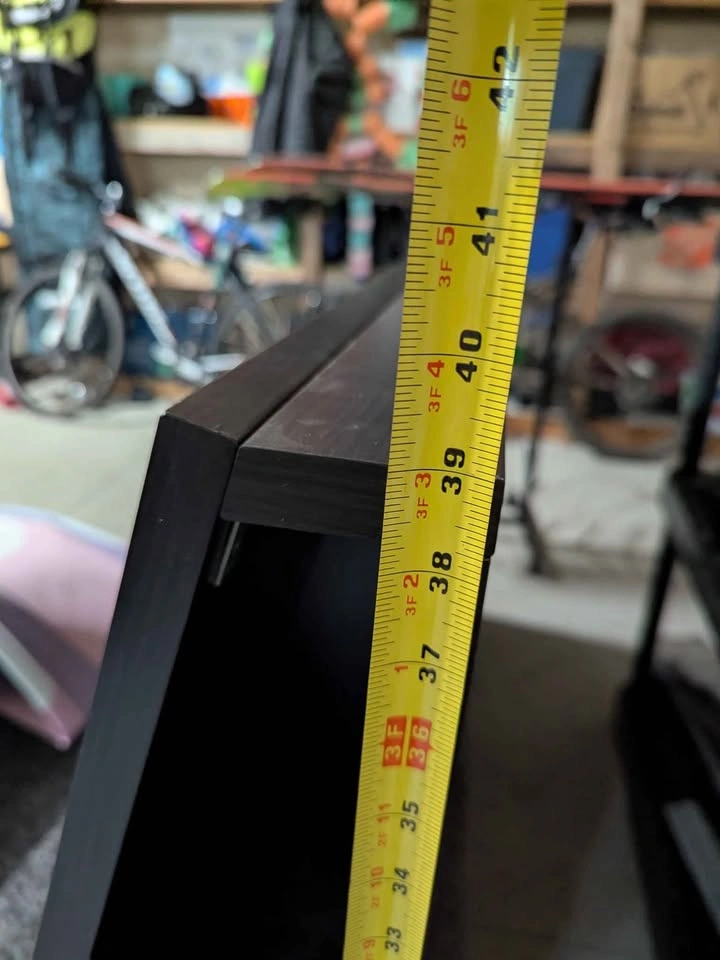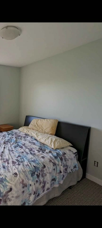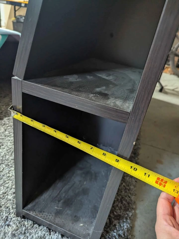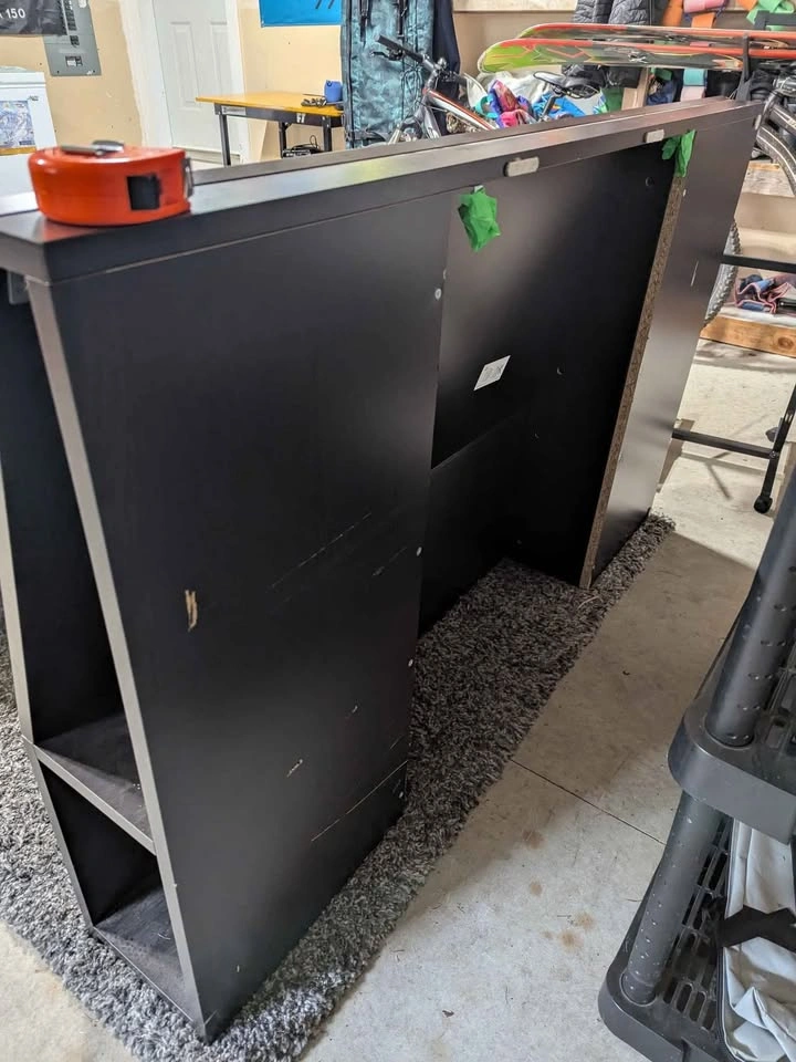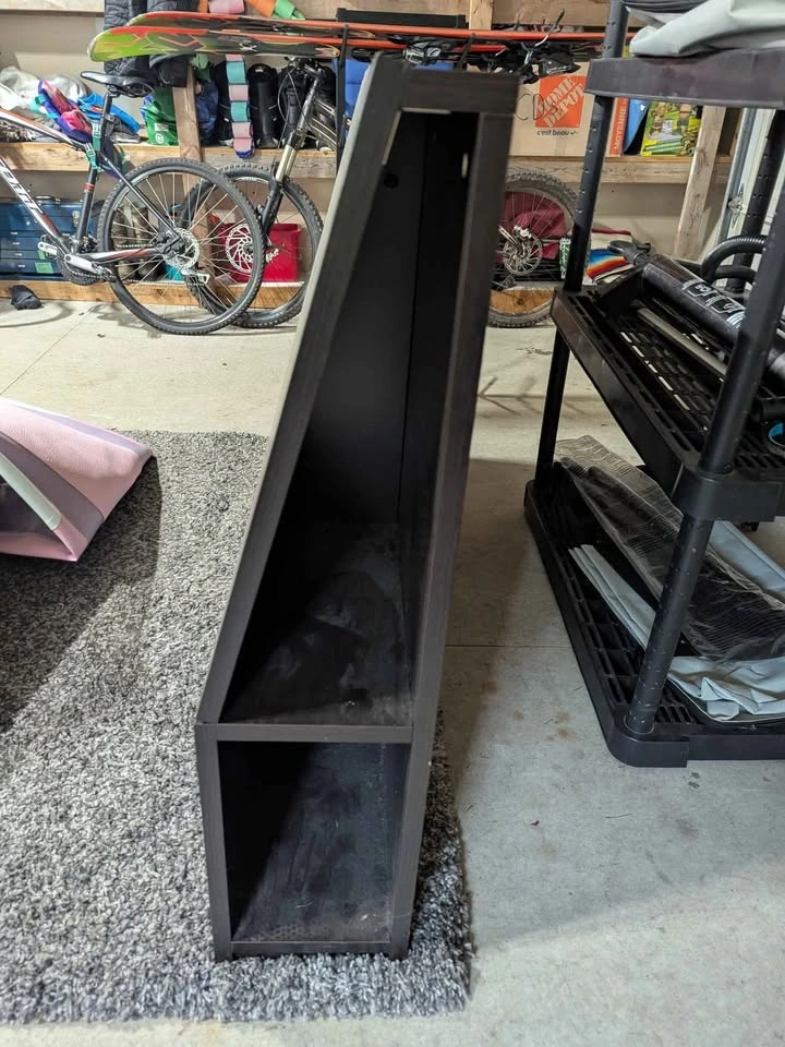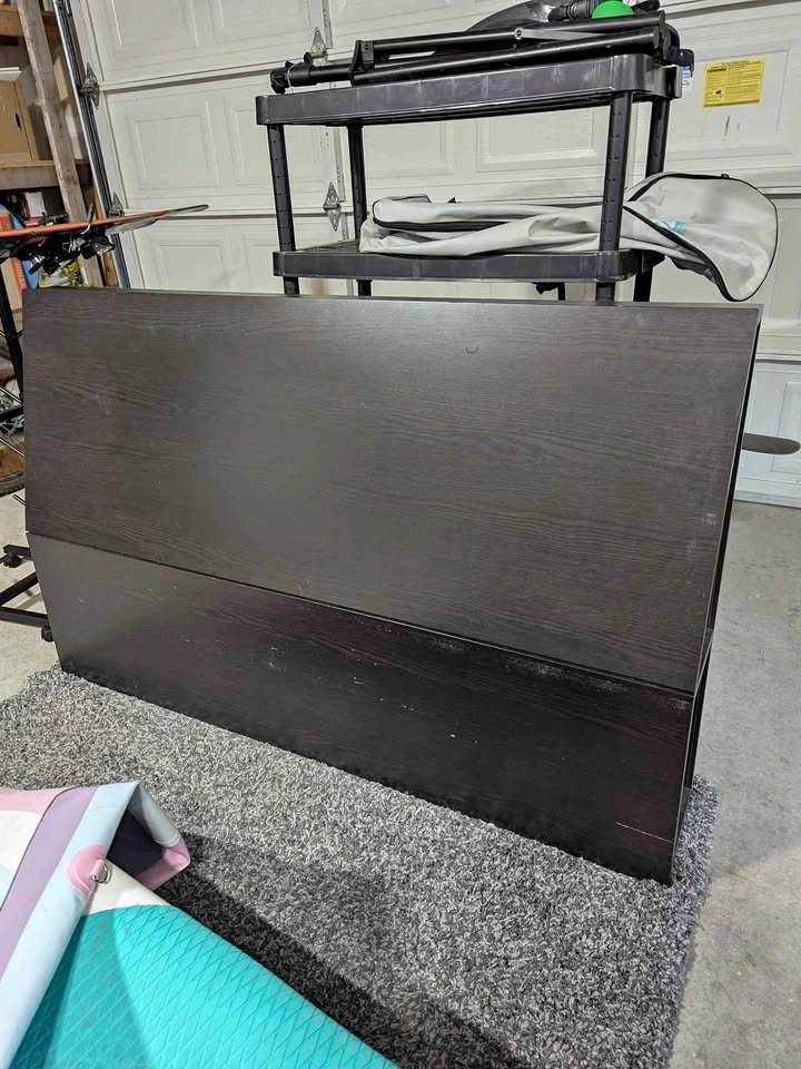 10Solid headboard. Dusty from the garage, used but good condition. Cubbys in each side for convenient storage, super handy for charging your phone. Great spare room headboard when you don't have room/don't want side tables! Has mounting spots on the back but we've always just pushed the bedframe against it, it's super heavy and doesn't move. Pick up by tin town.