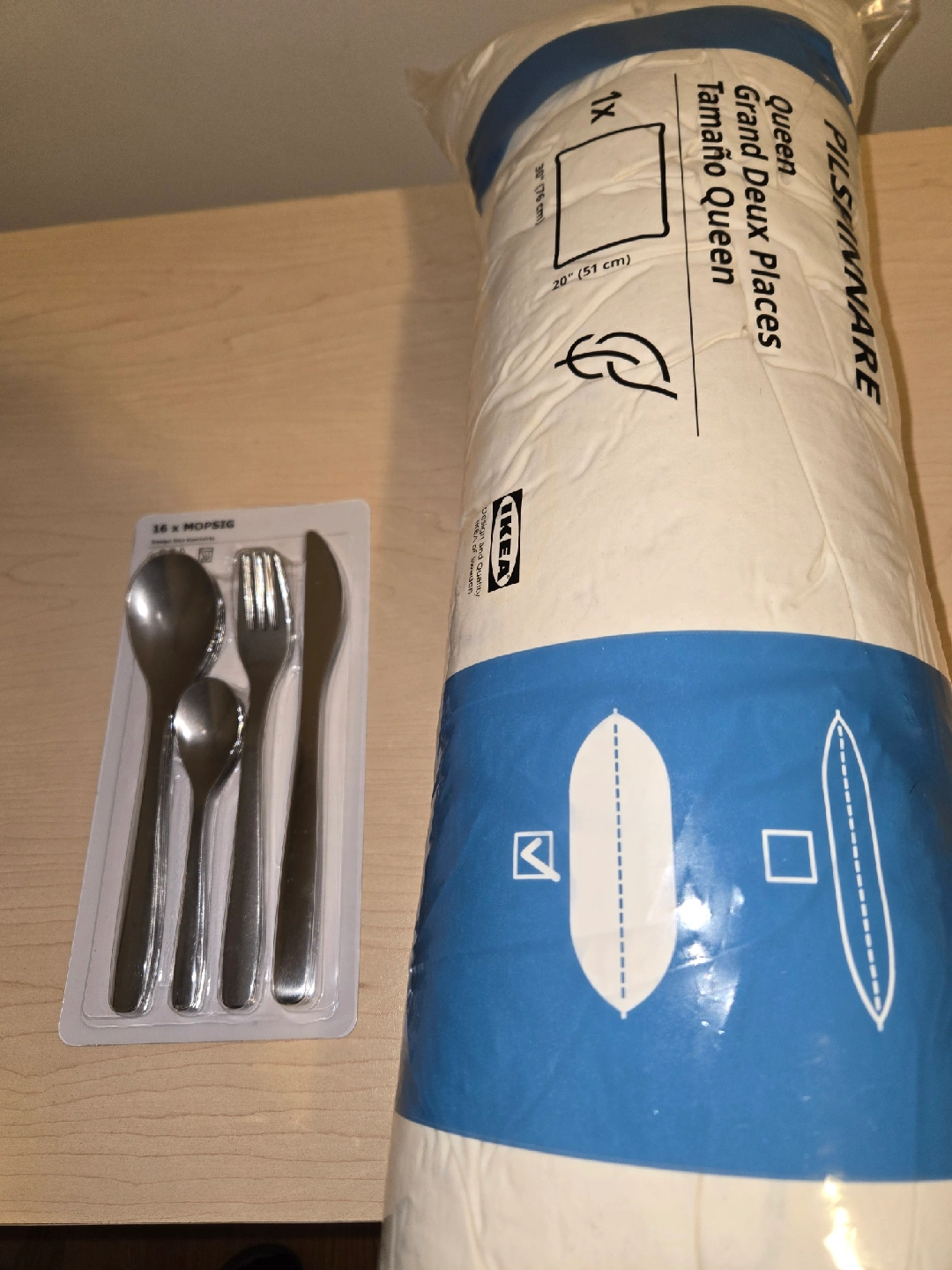 33Selling two brand new IKEA items: π PILSPINNARE Feather Pillow (Queen Size) β Soft and supportive with a natural feather filling. Size 20" x 30" (51 x 76 cm). Still sealed in original IKEA packaging. π΄ MOPSIG 16-Piece Cutlery Set β Includes 4 knives, 4 forks, 4 spoons, and 4 teaspoons. Durable stainless steel, never opened. Perfect for setting up a new place, guest room, or student apartment.