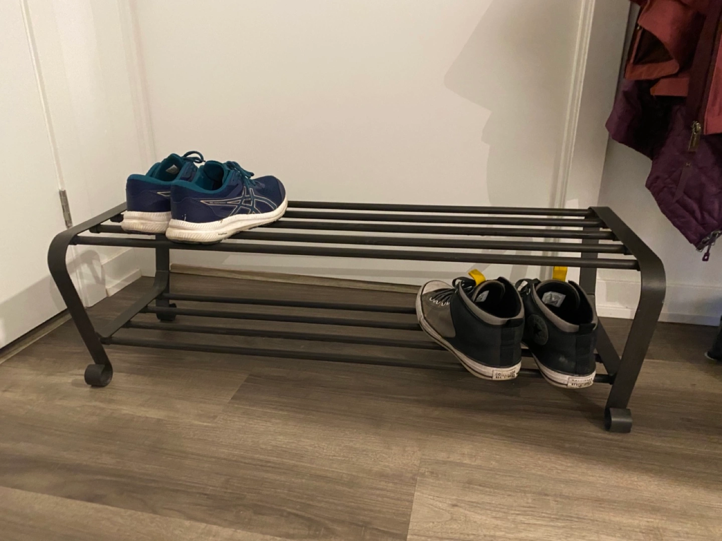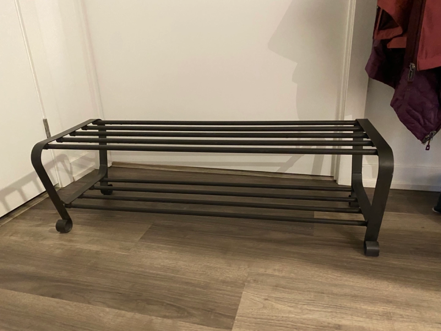 275Black two level shoe rack, easily holds 8 shoes. Excellent condition. Only selling because it doesn’t fit in my closet in my new apartment. Can be sold whole or unassembled. Pick up near Dundas West station