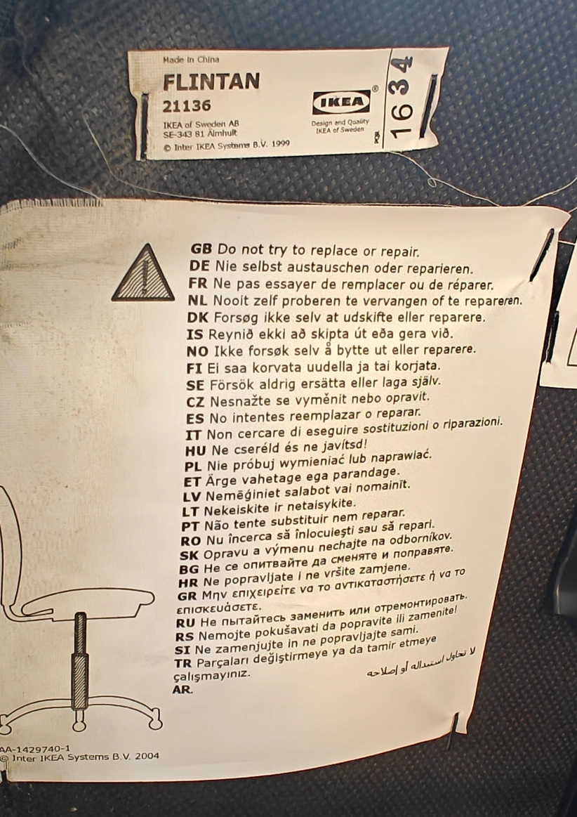 12π Condition: Excellent, Used Good π Brand: Office Star Products π Material: Polyurethane Foam π Model: FLINTAN , made by IKEA of Sweden π Color: Black π Used: Barely used β only for few months π Assembly: Fully assembled & ready to use pickup only l 295 Dufferin St