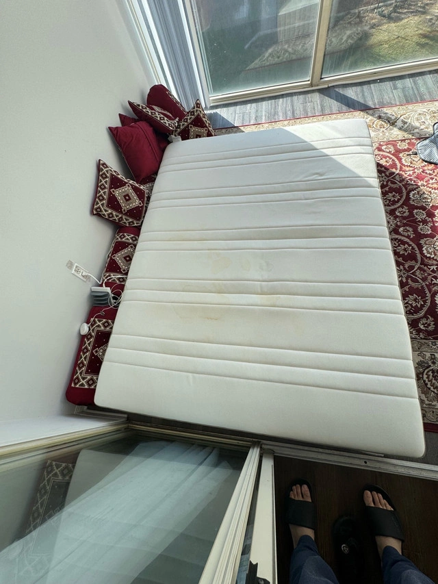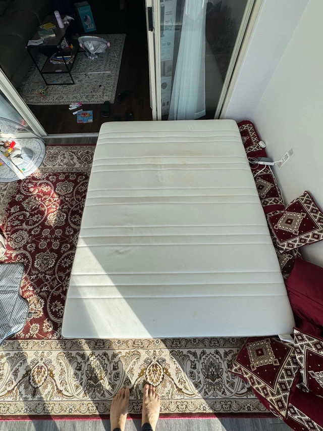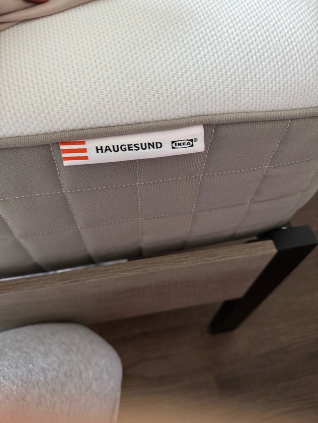 Selling IKEA Haugesund mattress, queen size. Originally purchased for 450 CAD. Used in guest room for guests. Pick up in Mississauga. Comes from a smoke free and pet free house. No bedbugs! It is a medium firm mattress.
