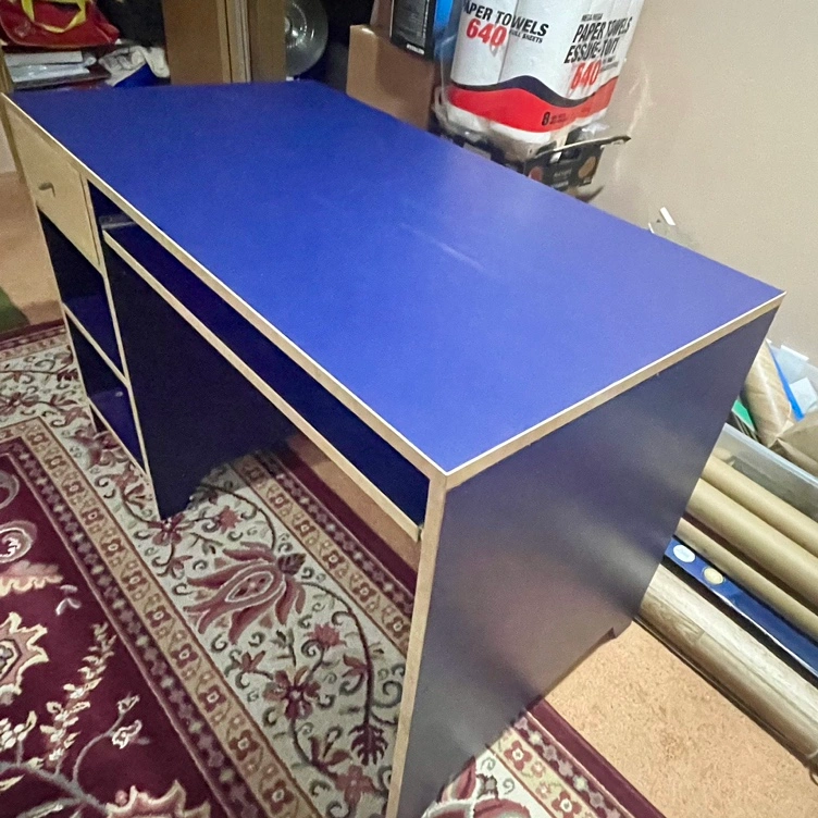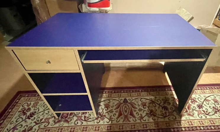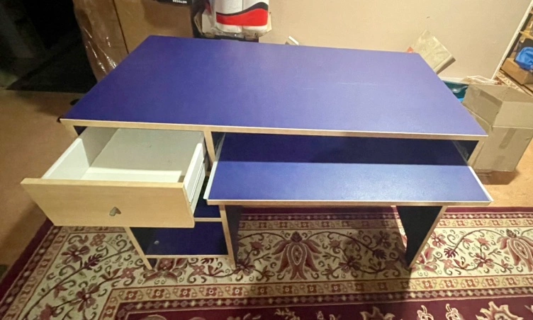 I'm selling an IKEA robin blue computer desk with a keyboard tray and a shelf with a drawer. It's in excellent condition. OBO