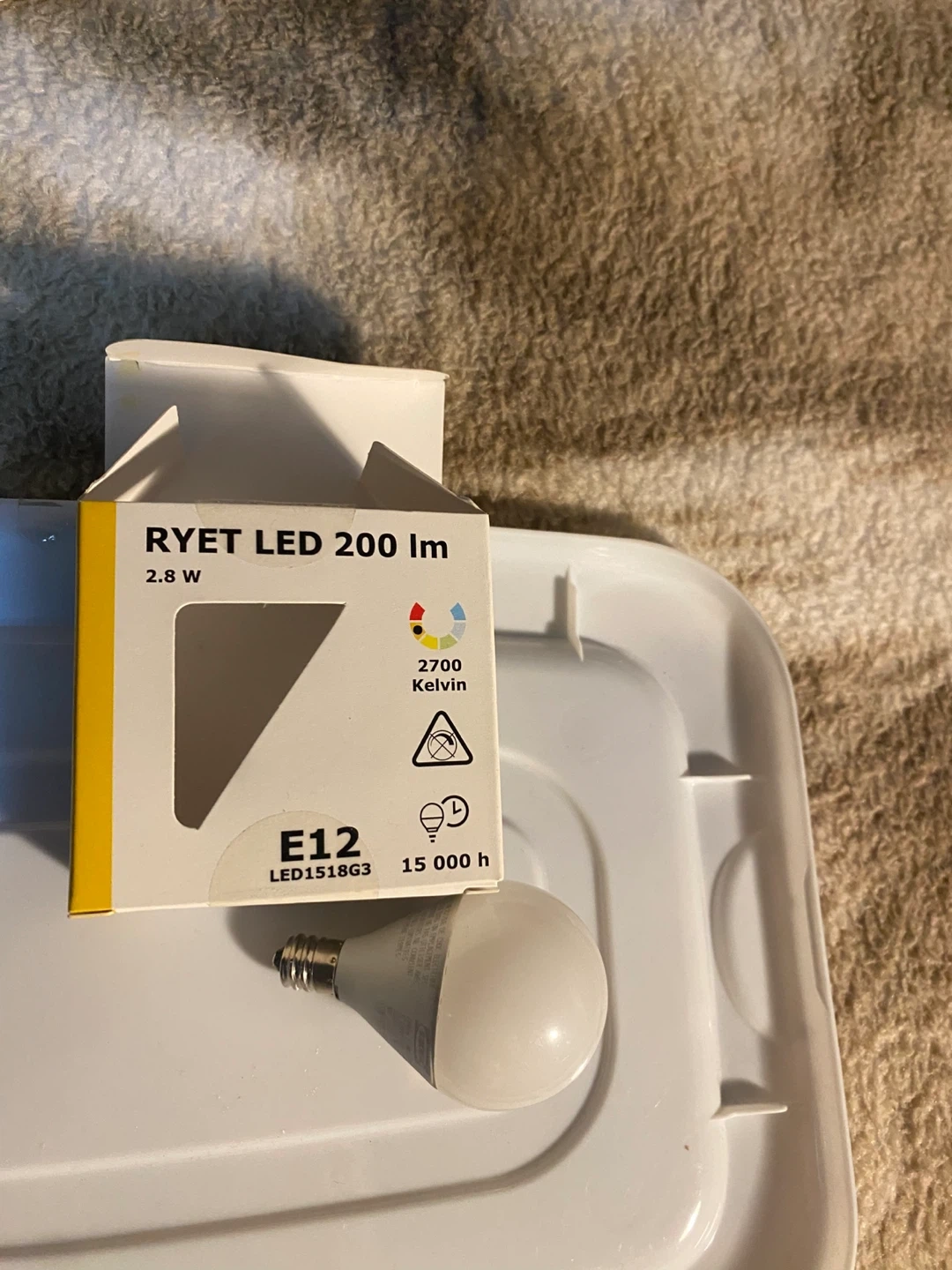 393Selling a brand new IKEA RYET LED light bulb! It's a 2.8W bulb with 200 lumens. The bulb has a E12 base and a lifespan of 15,000 hours. It emits a warm white light at 2700 Kelvin…. No longer need Moving sale Pick up only