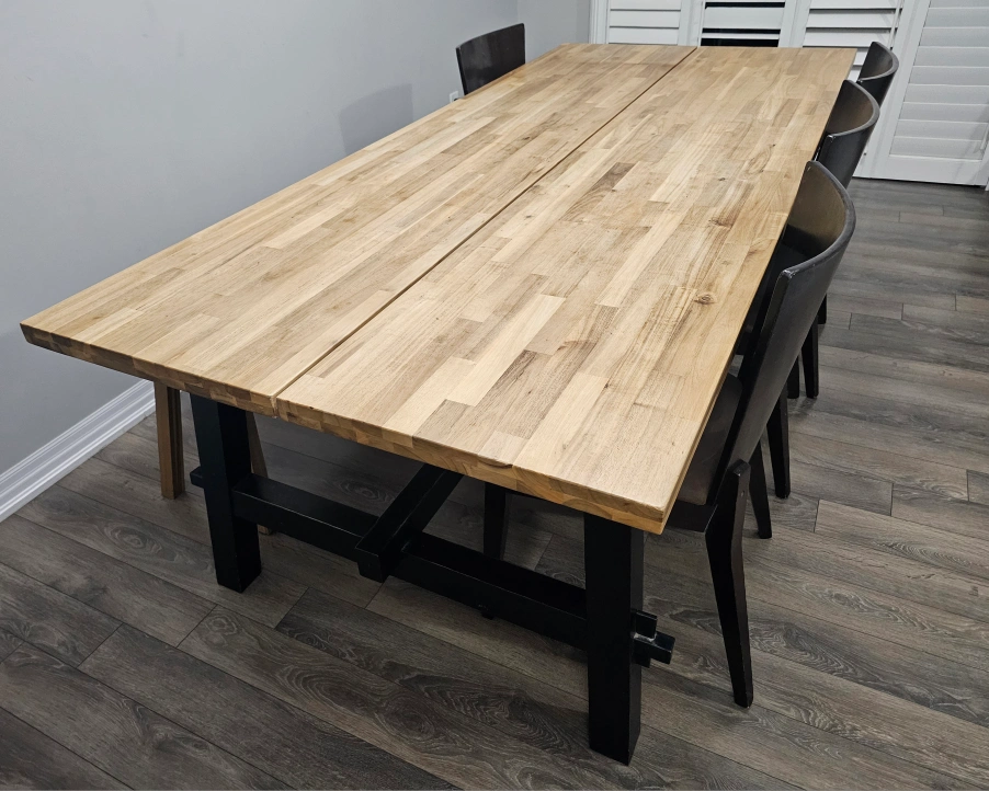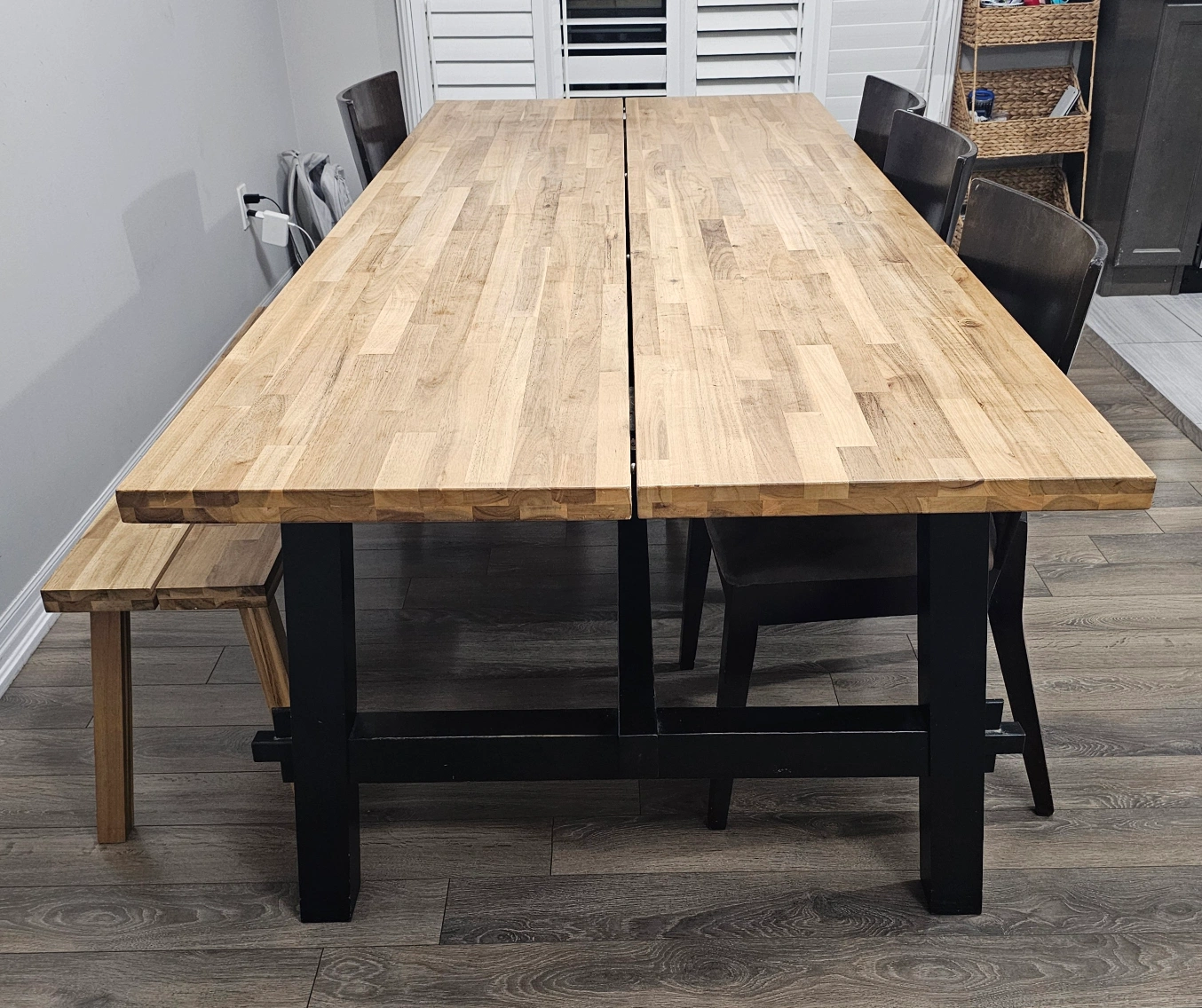 IKEA SKOGSTA Dining Table + 1 Bench - Selling a beautiful wood dining table, perfect for family dinners or gatherings. It comes with a matching bench (chairs not included). - The table has a few light scratches and marks but sturdy and in like new condition. - It's not a foldable table, need to disassemble it 📍Cash & Pickup Only ✉️ More info please DM me :)