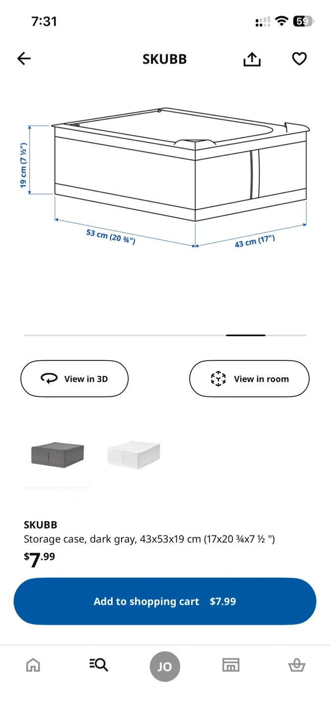 Selling a dark gray IKEA SKUBB storage case! It measures 43x53x19 cm (17x20 ¾x7 ½ "). Originally bought for $7.99+Tax
