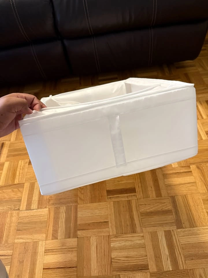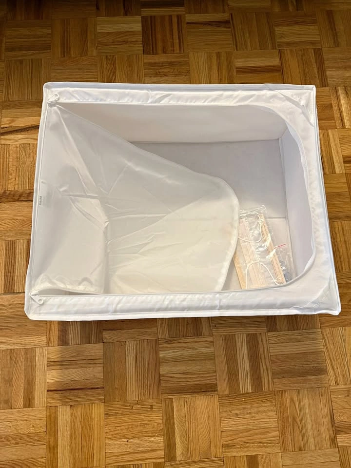 I’m selling an IKEA SKUBB storage case in excellent condition (white, 65 × 53 × 19 cm) — with no stains, rips, or structural damage. This is the same model IKEA lists under SKU 105.910.59. It’s great for storing seasonal clothes, bedding, pillows, or anything you want tucked away but still accessible. Because it’s collapsible, when not in use you can flatten it for easy storage. Features / Highlights: Dimensions: 65 × 53 × 19 cm (25 ½" × 20 ¾" × 7 ½") Comes with a side handle for easy pulling Ventilation mesh in the corners to allow airflow Made of 100% polyester (at least 90% recycled) + rigid insert for shape Perfect for under-bed use, closet shelves, or wardrobe systems Cleaned, stored in pet/smoke-free home Pickup near Yonge and College (Downtown Toronto)