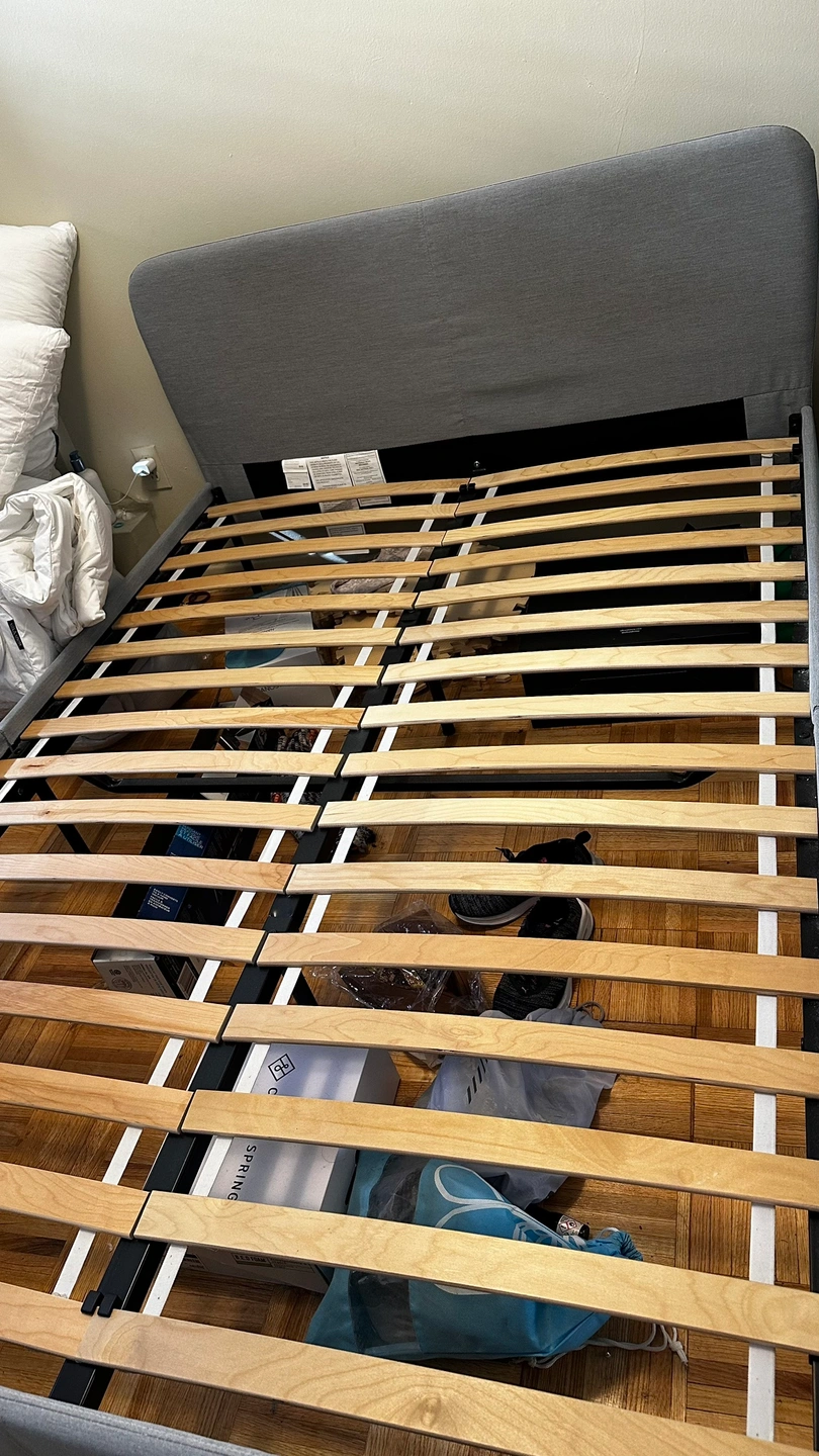 25Lightly used excellent condition bedframe. It is full/double size. We are getting a bigger one, so this needs to go asap. Feel free to message at 6478771697 if you are seriously considering it.